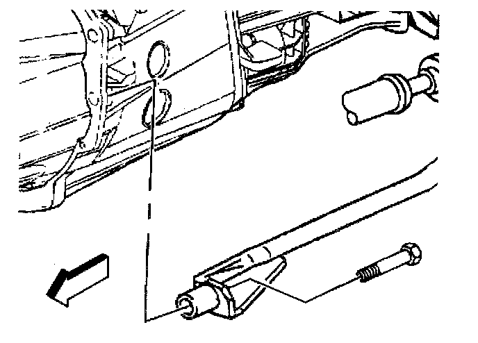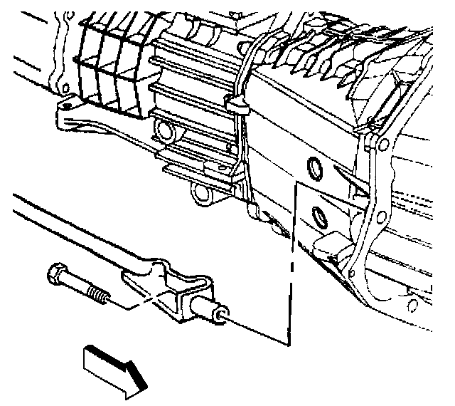 9. If equipped with a transfer case, install the bolt securing the right side support brace to the transfer case.