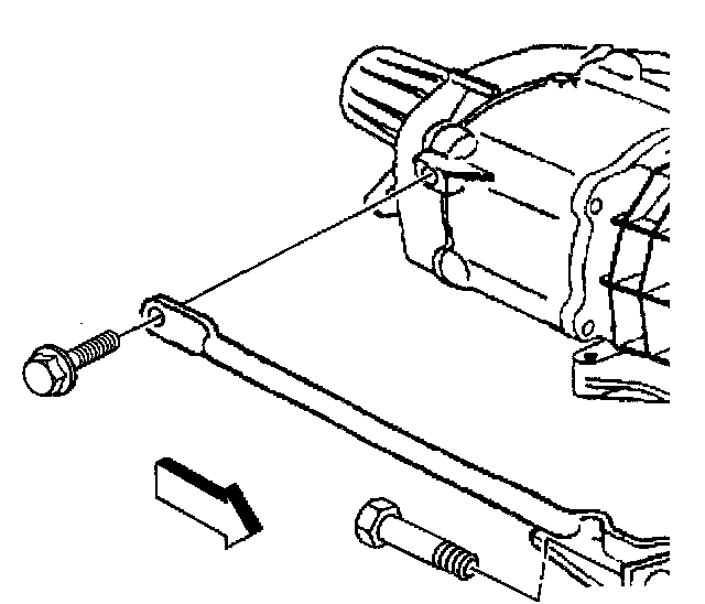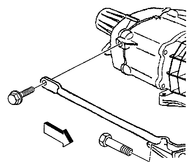 9. If equipped with a transfer case, remove the bolt securing the left side support brace to the transmission.