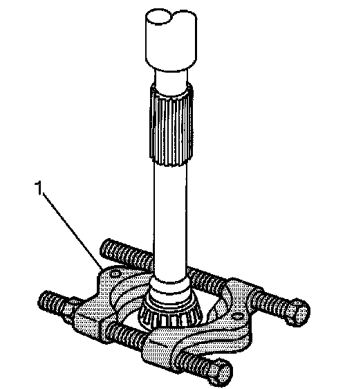 2. Remove input shaft bearing cone using the J 22912-01 (1) and a hydraulic press.