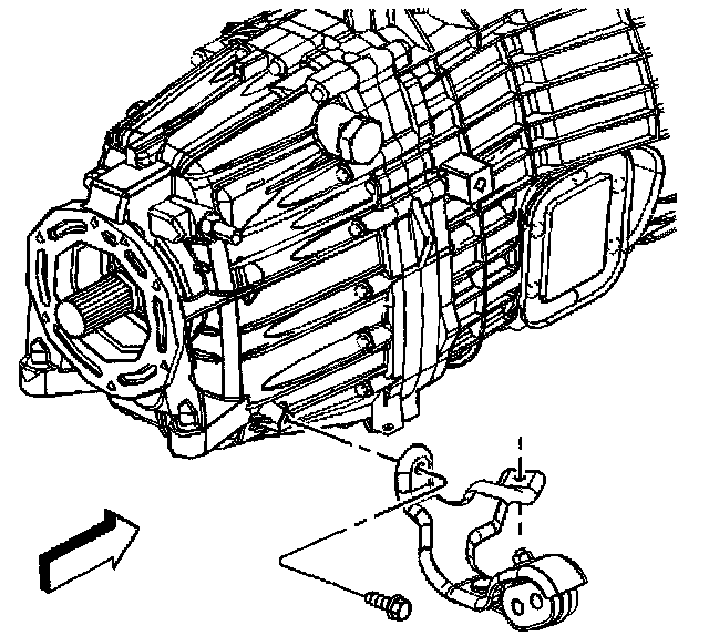 17. Remove the exhaust support bracket and the 2 bolts from the transmission.