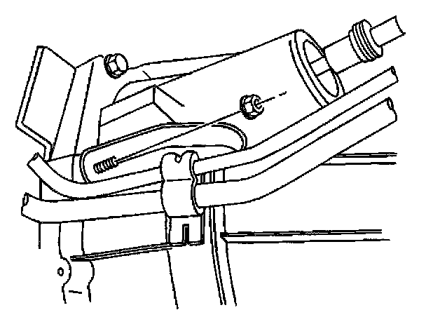 18. Remove the front fuel line nut and bracket from the manual transmission.