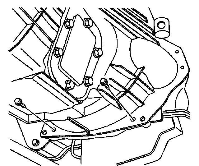 24. Remove the bolts and studs securing the transmission to the engine. Note the location of the studs and the bolts.