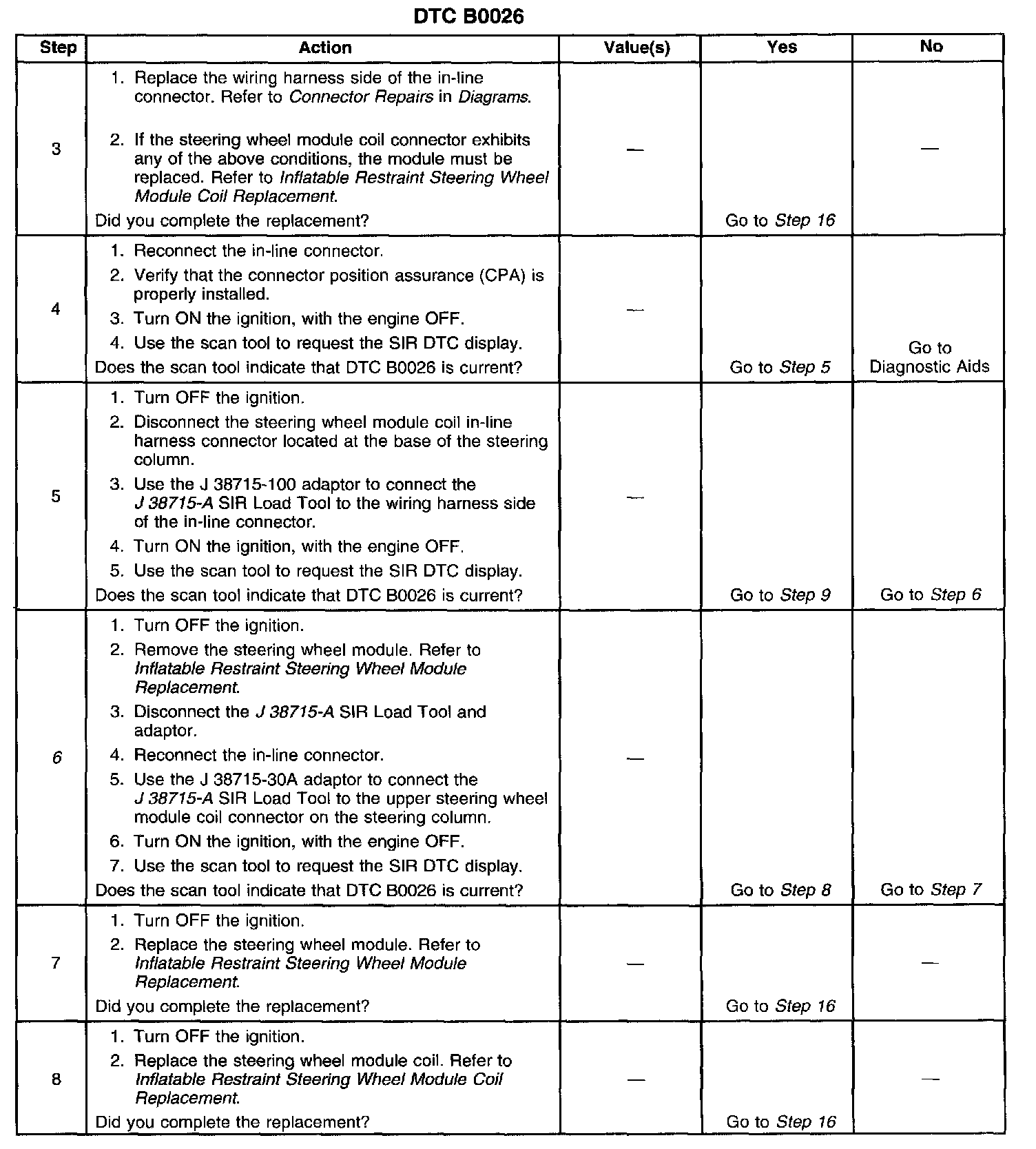 13. Tests for an open or a high resistance in the driver frontal low circuit or if there is a malfunctioning SDM.