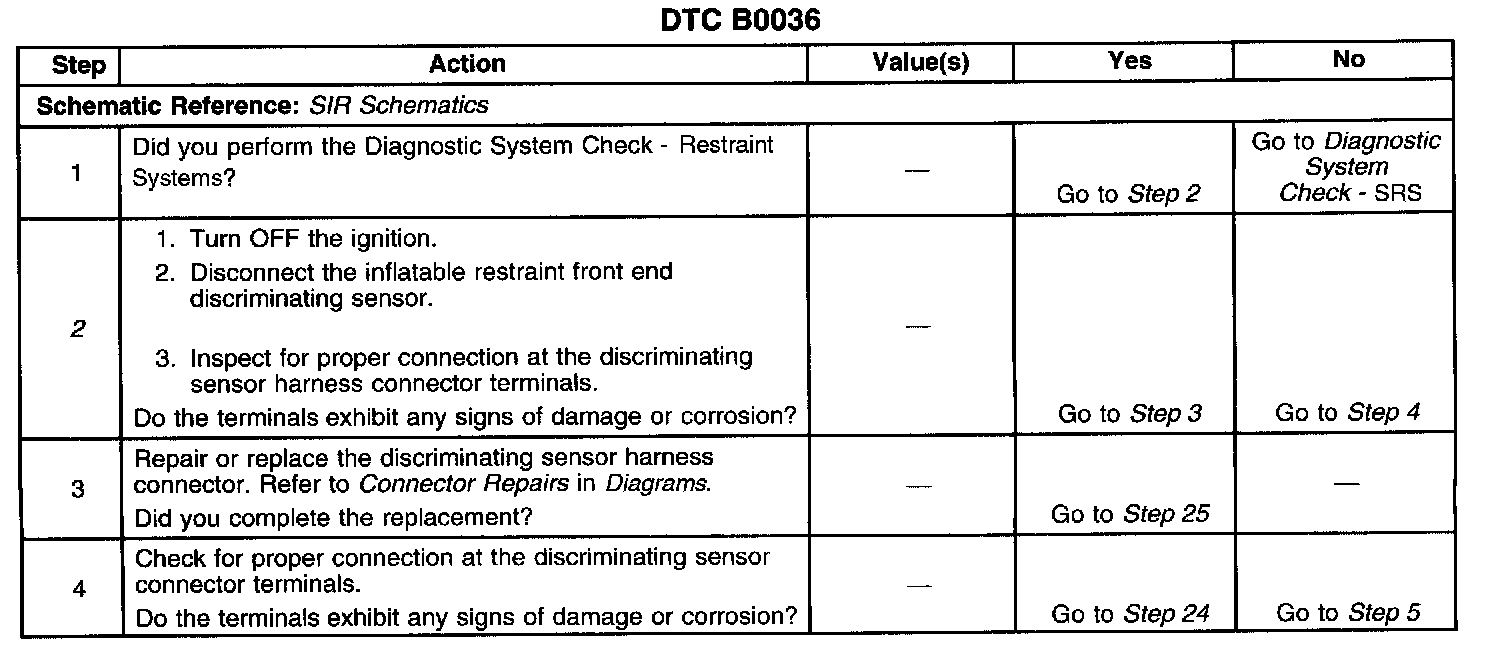 A broken or chafed wire in the inflatable restraint front end discriminating sensor circuits may cause an intermittent condition to occur. Refer to Testing for Intermittent and Poor Connections in Diagrams.
