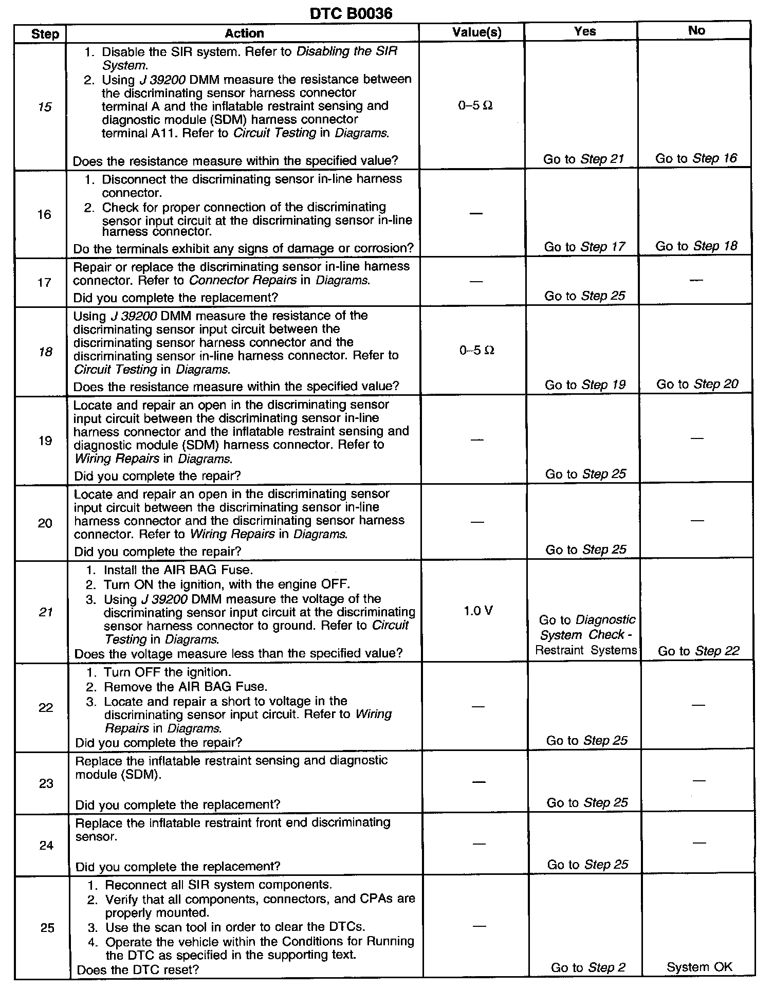 18. Test isolates an open in the discriminating sensor signal circuit to one side of the in-line connector.