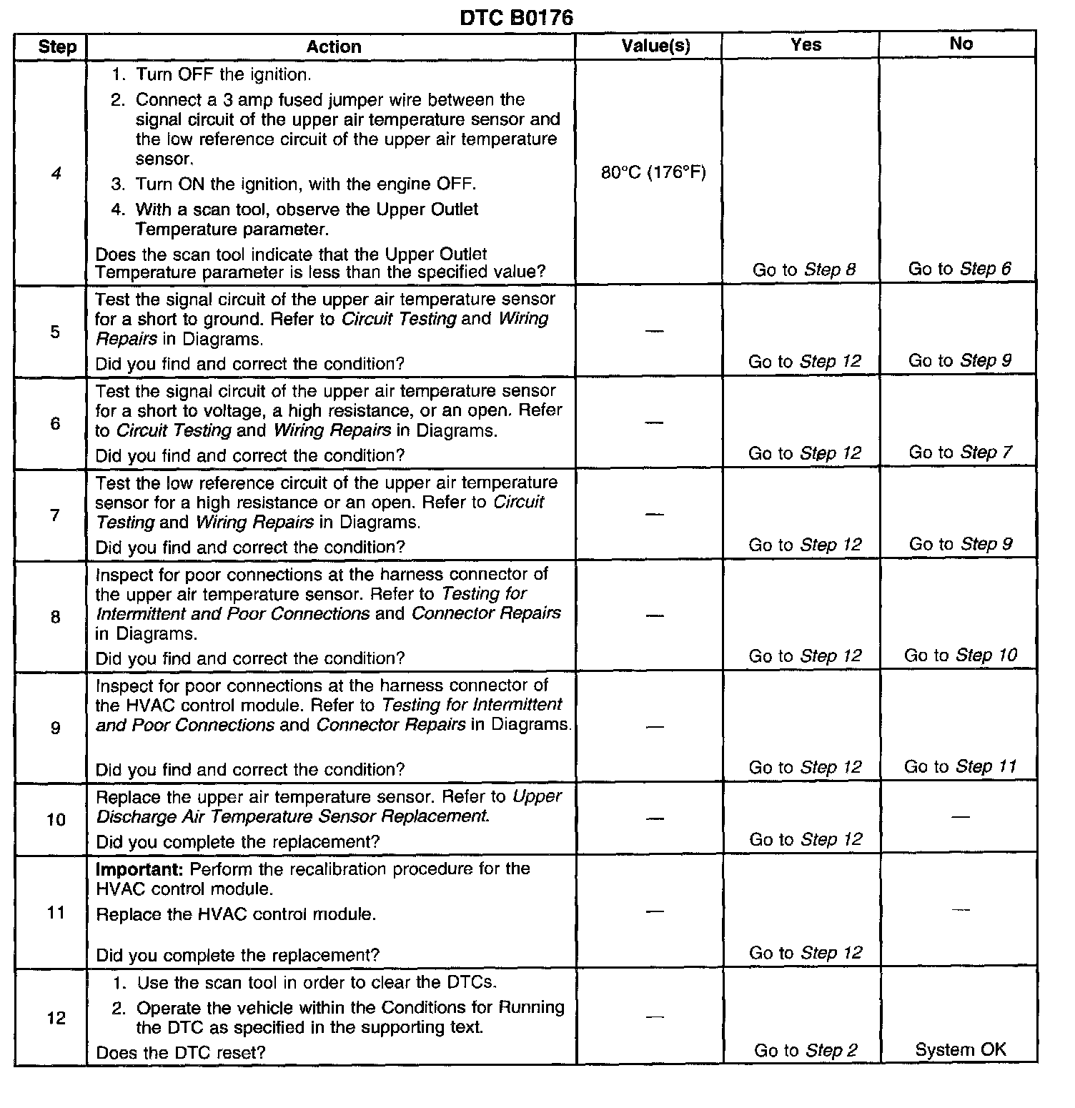 The number(s) below refer to the step number(s) on the diagnostic table.