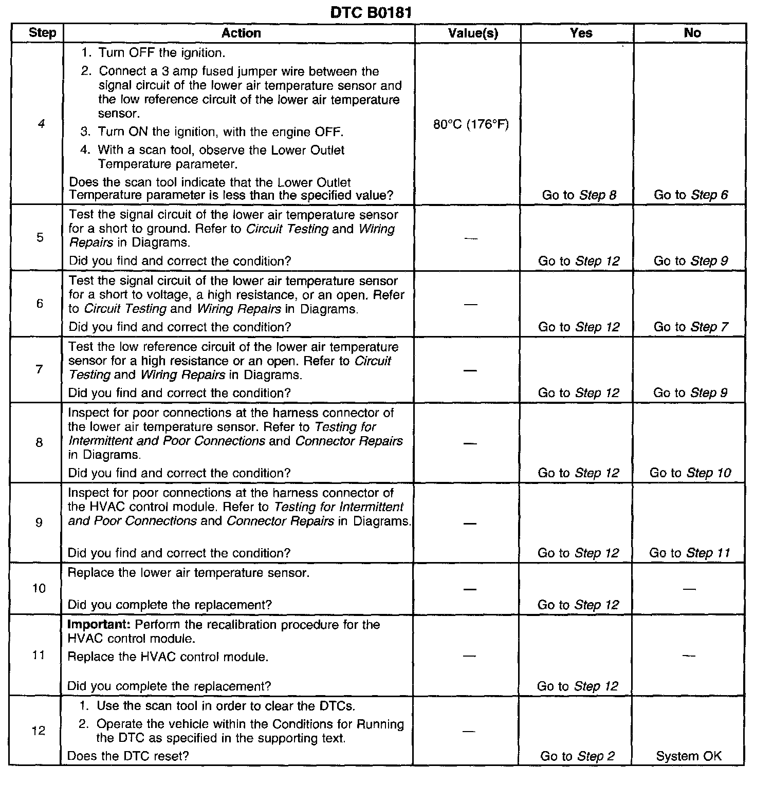 ^ The DTC becomes history when the HVAC control module no longer detects a failure.