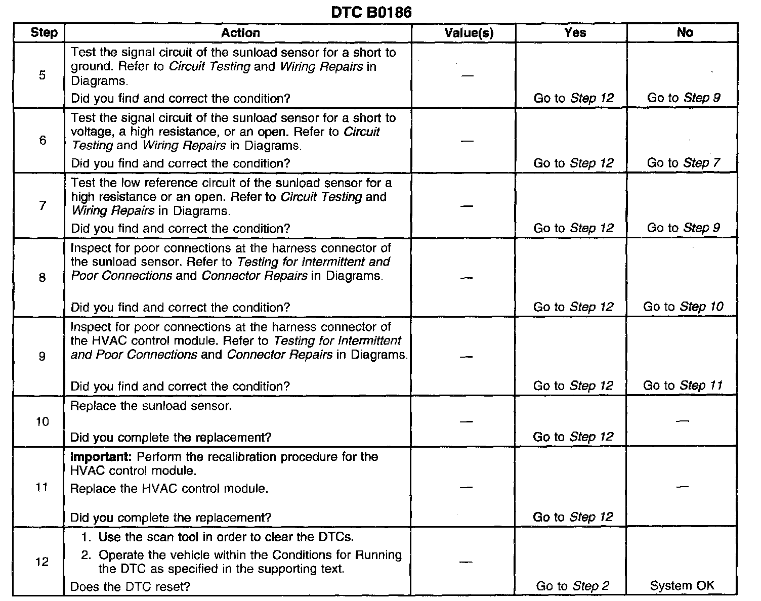 The number(s) below refer to the step number(s) on the diagnostic table.