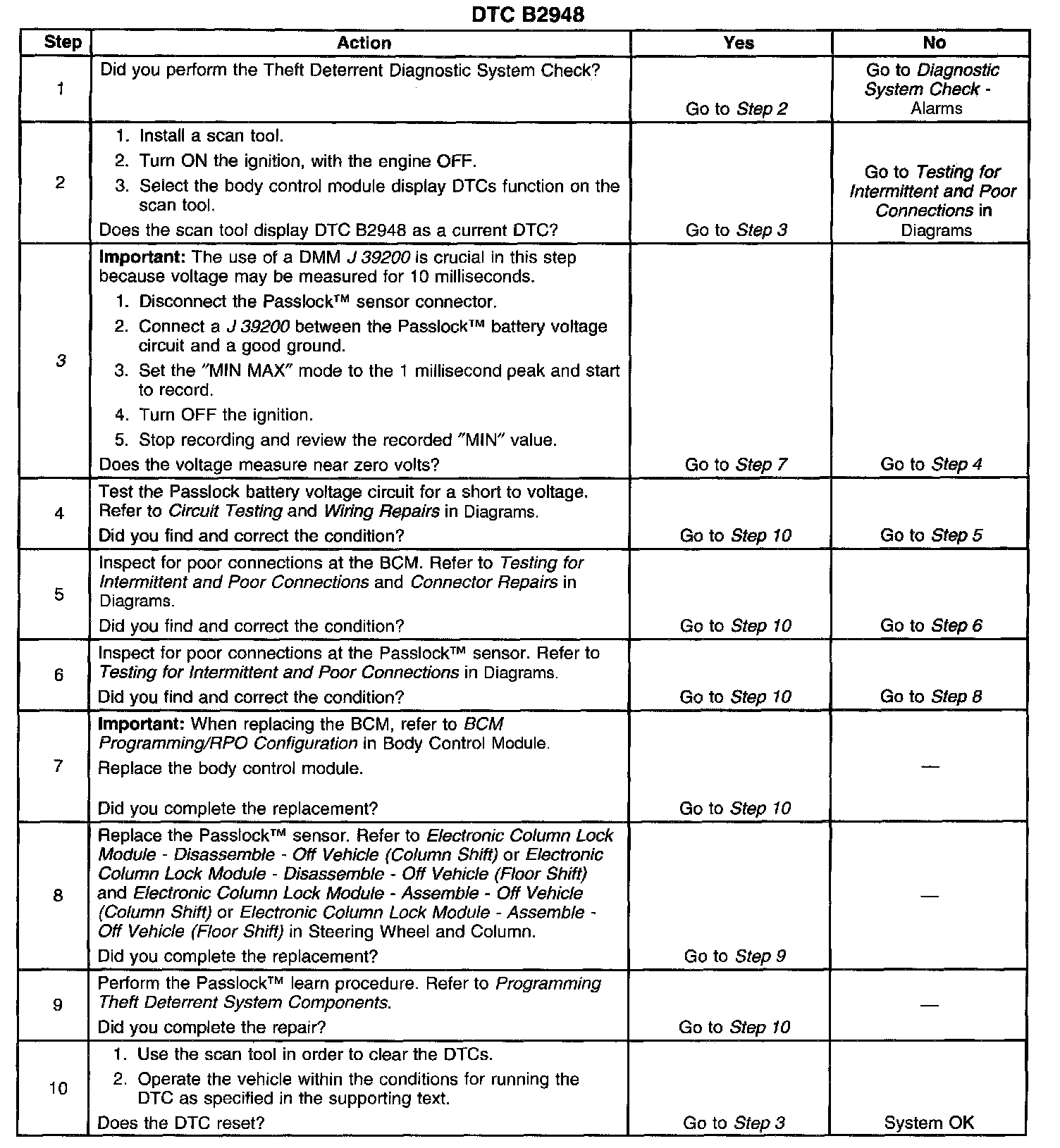 ^ When a short to battery is no longer present on the Passlock sensor power circuit, the ignition switch must be cycled from OFF to ON before this DTC can change from a current DTC to a history DTC.