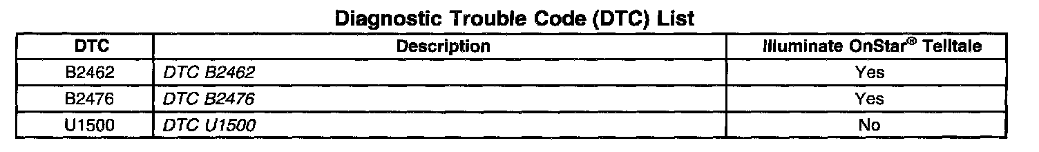 Diagnostic Trouble Code (DTC) List: