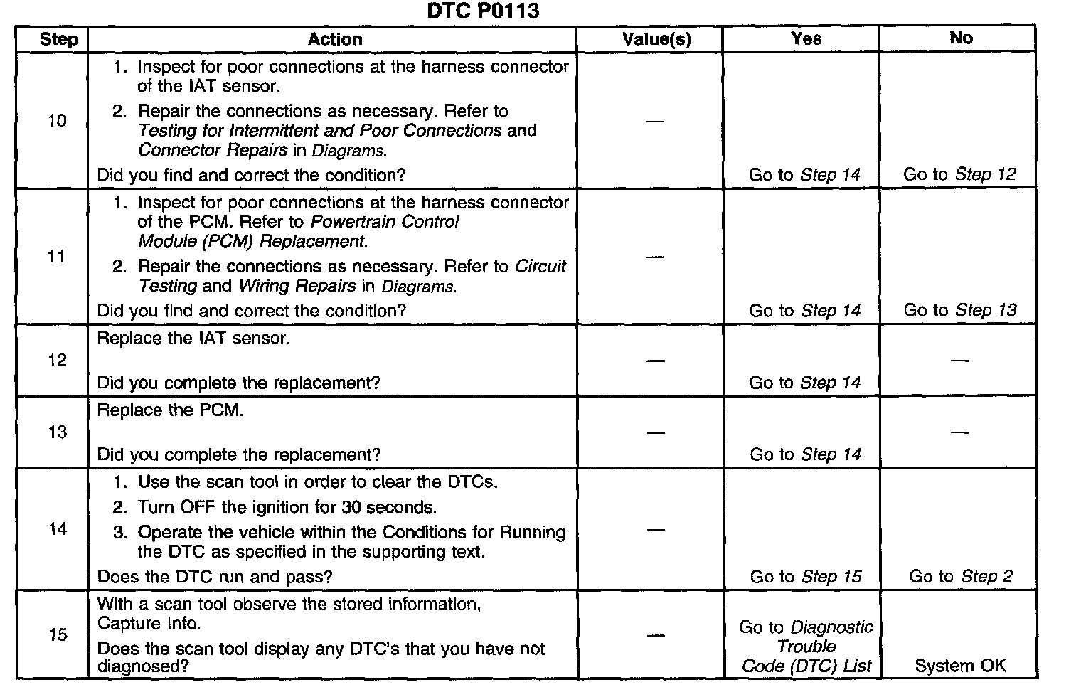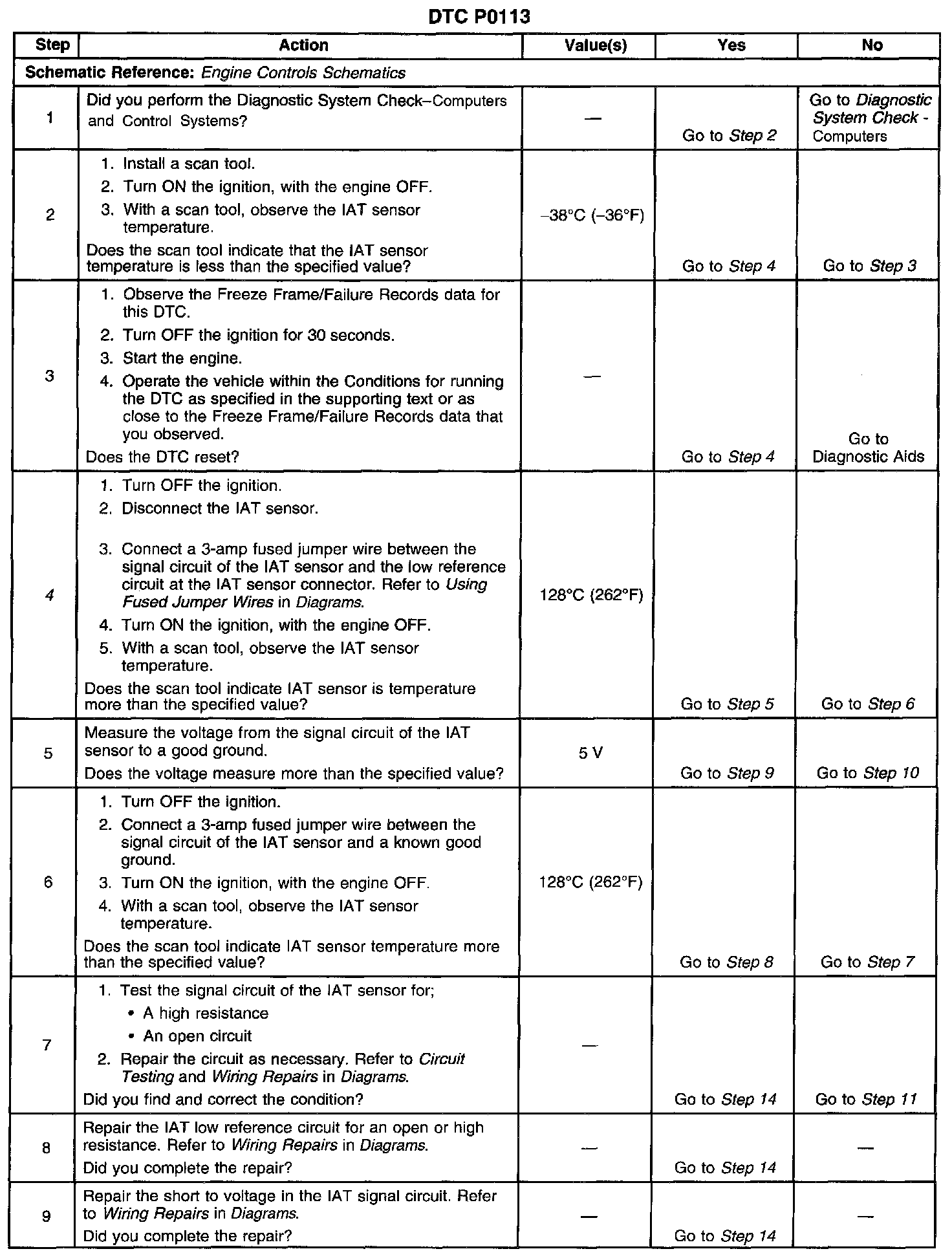 This Diagnostic Trouble Code (DTC) is designed to detect an IAT sensor signal voltage higher than possible in a normally operating IAT system.