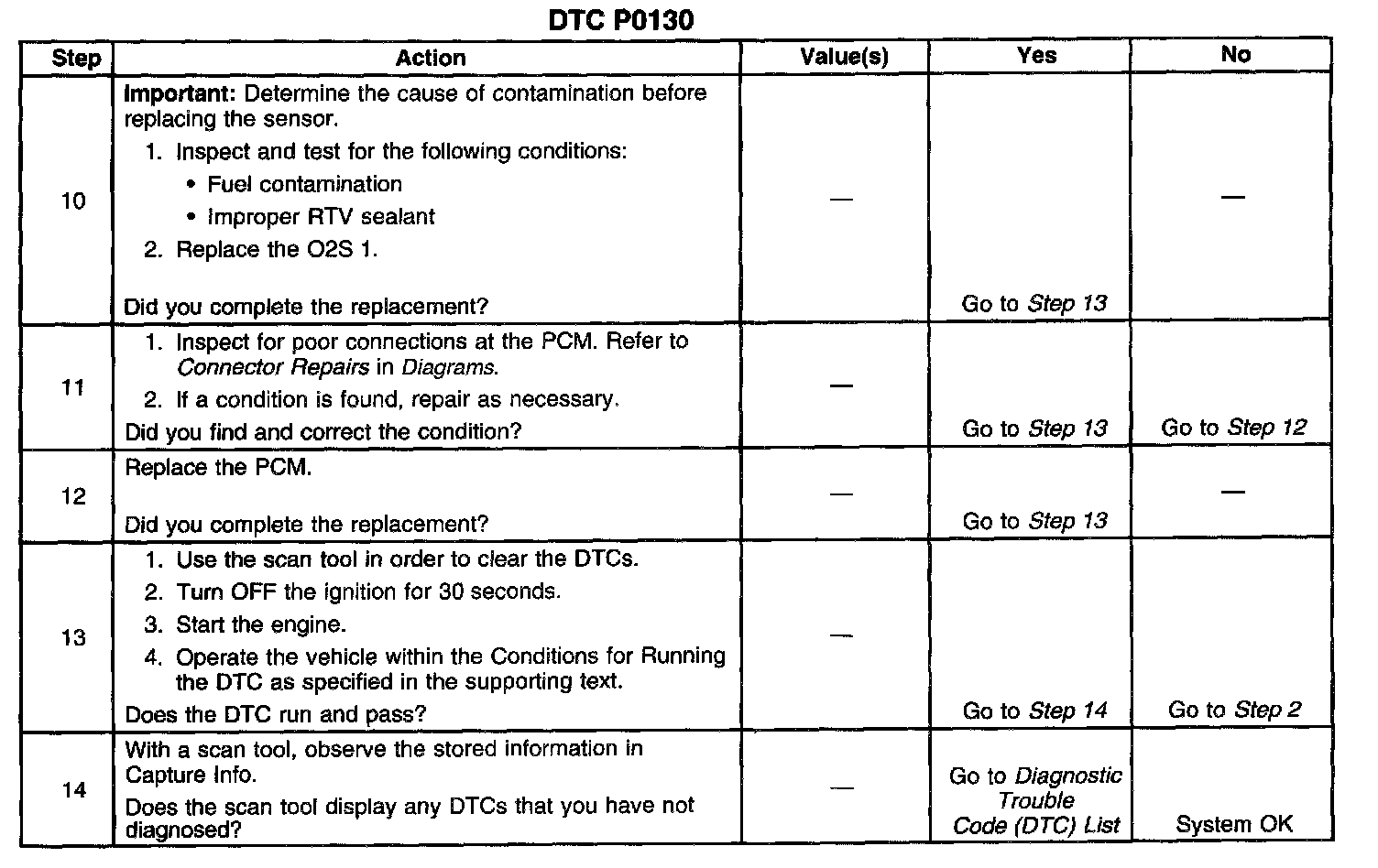 ^ O2S 1 contamination include leaking exhaust before O2S causing low reading (lean)- Inspect the O2S 1 for silicone contamination from fuel or the use of improper RTV sealant.