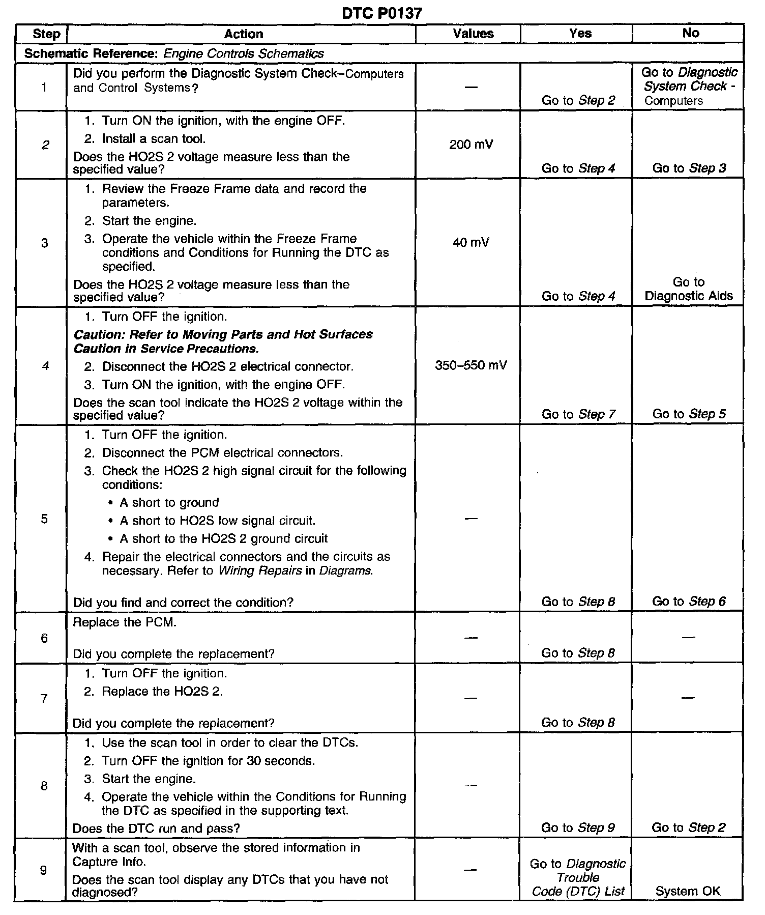 2. This step determines if DTC P0137 is the result of a hard malfunction or an intermittent condition.