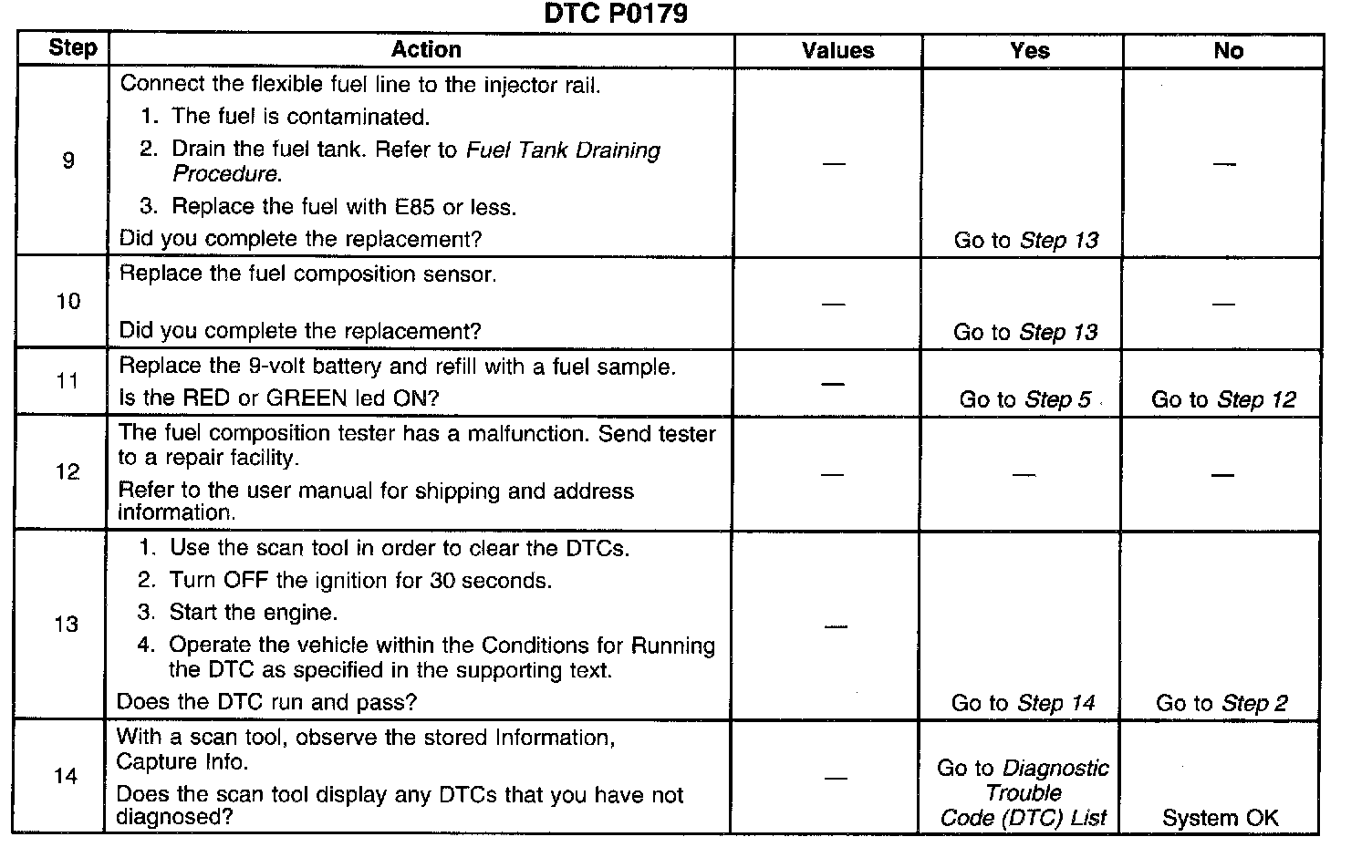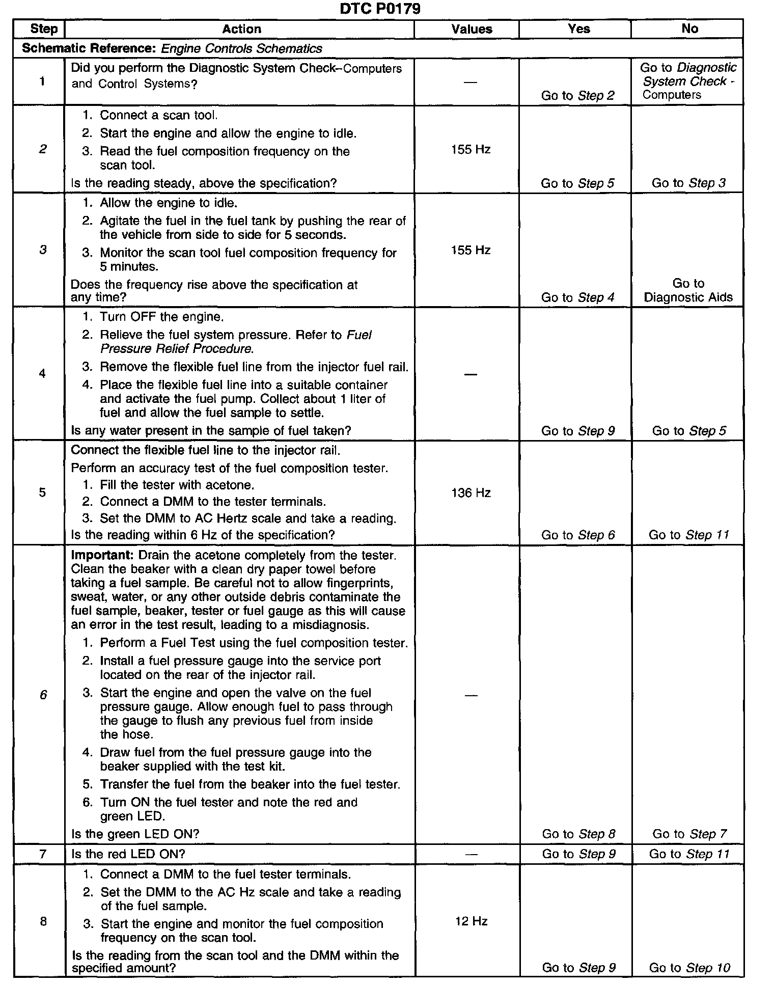 The numbers below refer to the step numbers on the diagnostic table.