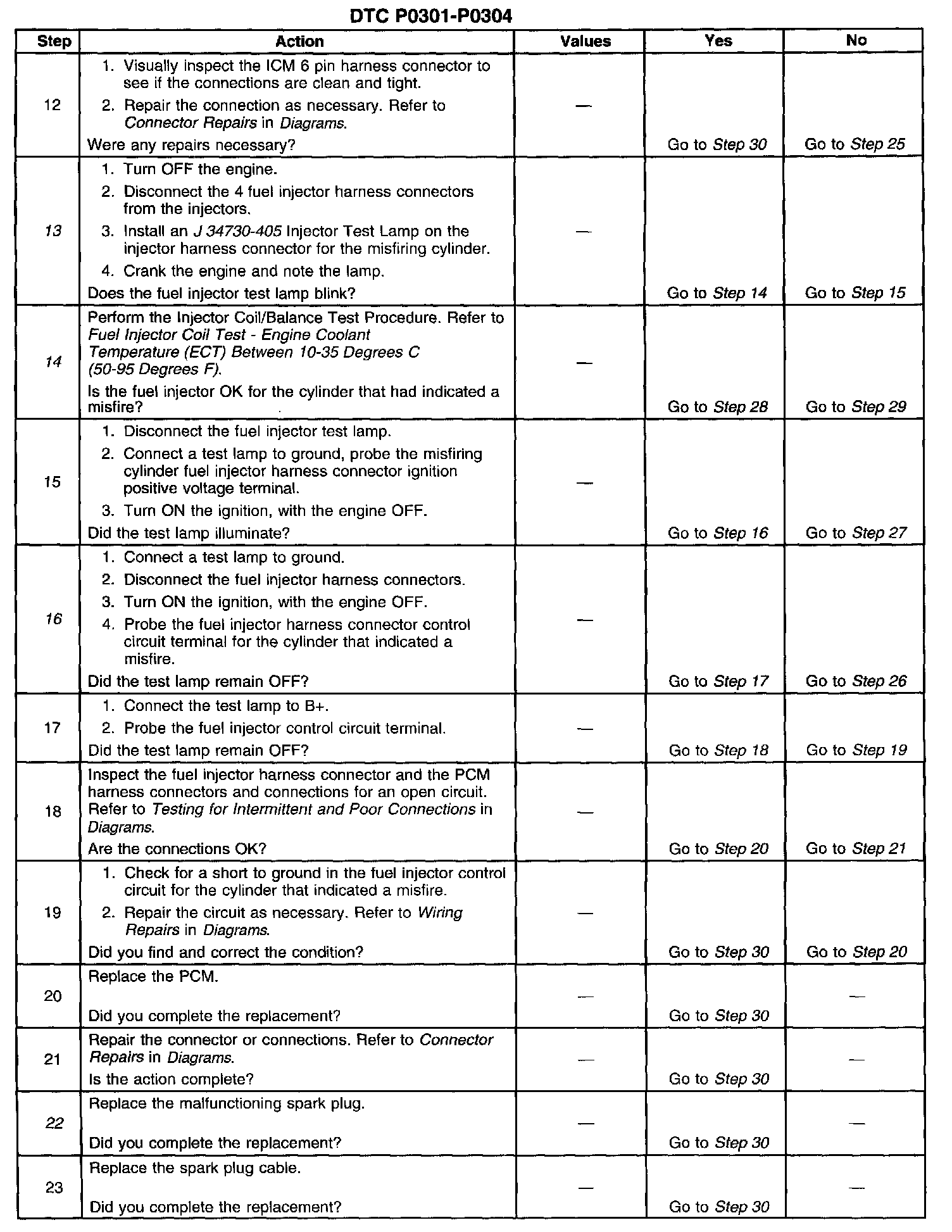 4. This step determines if the Misfire DTC is the result of a hard malfunction or an intermiffent condition.
