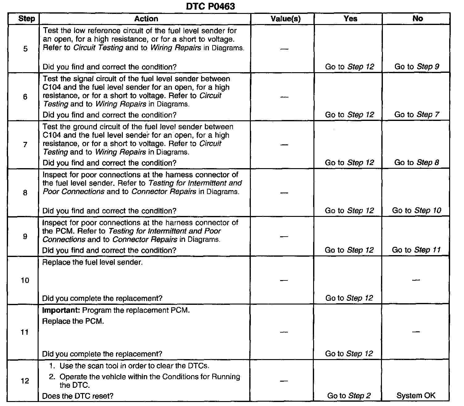 The number below refers to the step number on the diagnostic table.