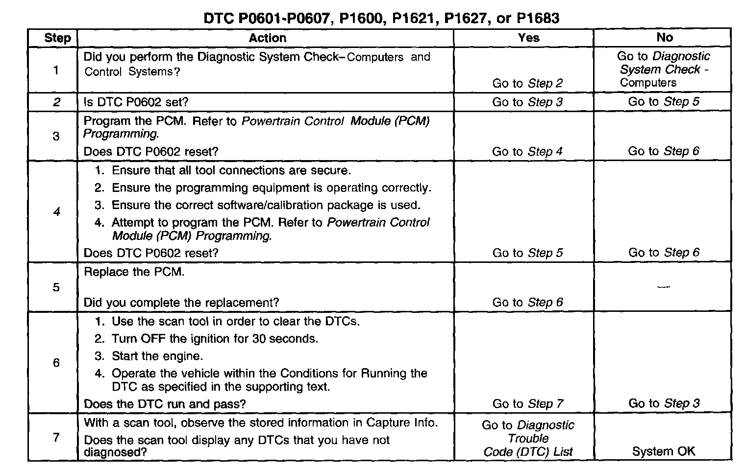^ DTC P0601 Control Module Read Only Memory (ROM)