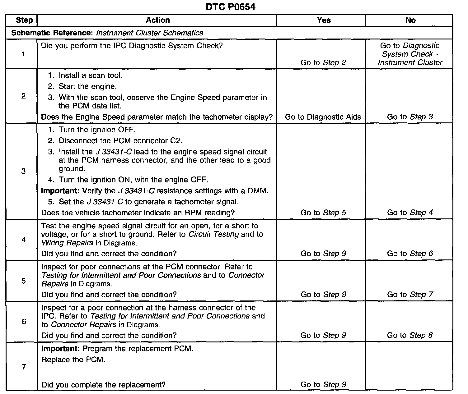 CIRCUIT DESCRIPTIONThe PCM creates the engine speed output signal by pulsing the circuit to ground. The PCM pulses the circuit at the same rate as the engine speed signal input. The PCM monitors the voltage on the engine speed output circuit. If the PCM determines the voltage is out of the normal operating range, a DTC sets.