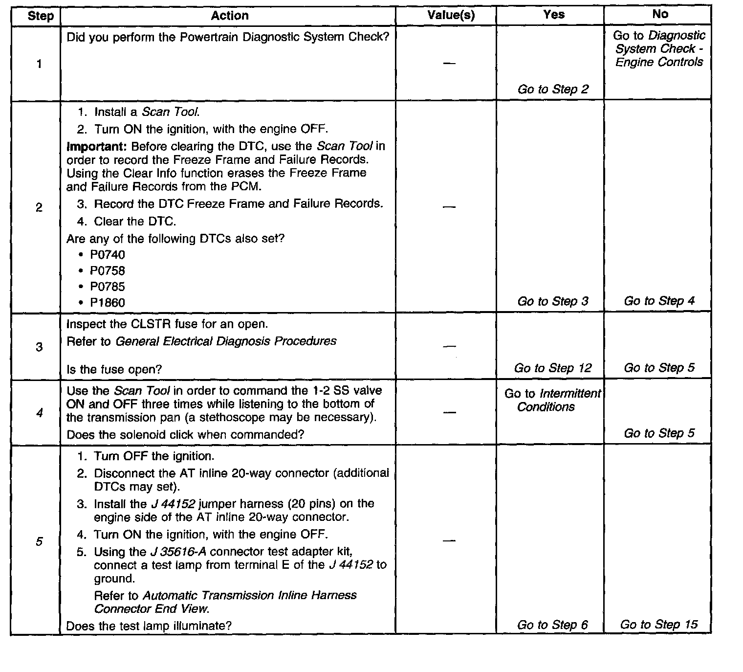 5. This step tests for power to the 1-2 SS valve from the ignition through the fuse.