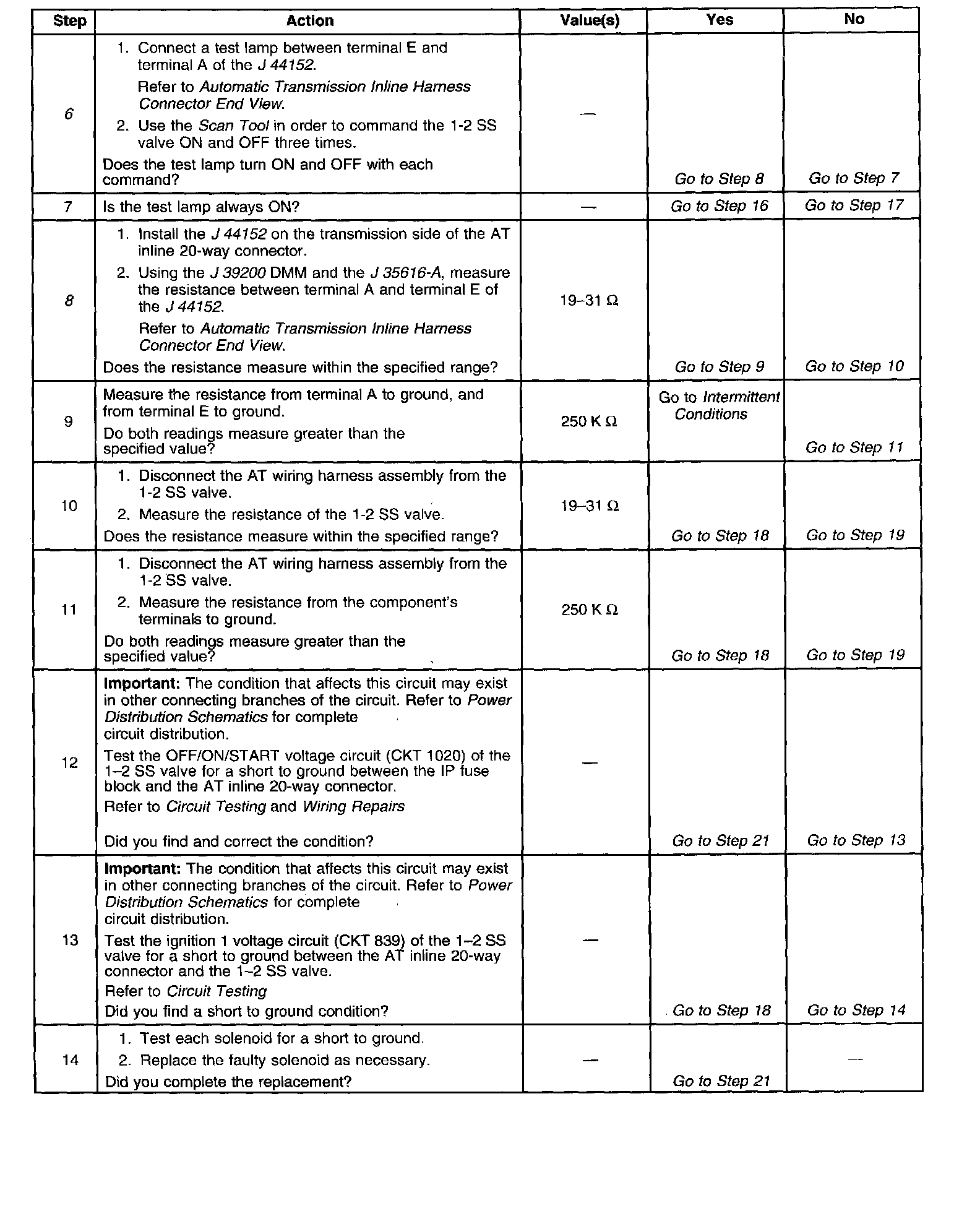 8. This step measures the resistance of the AT wiring harness assembly and the 1-2 SS valve.