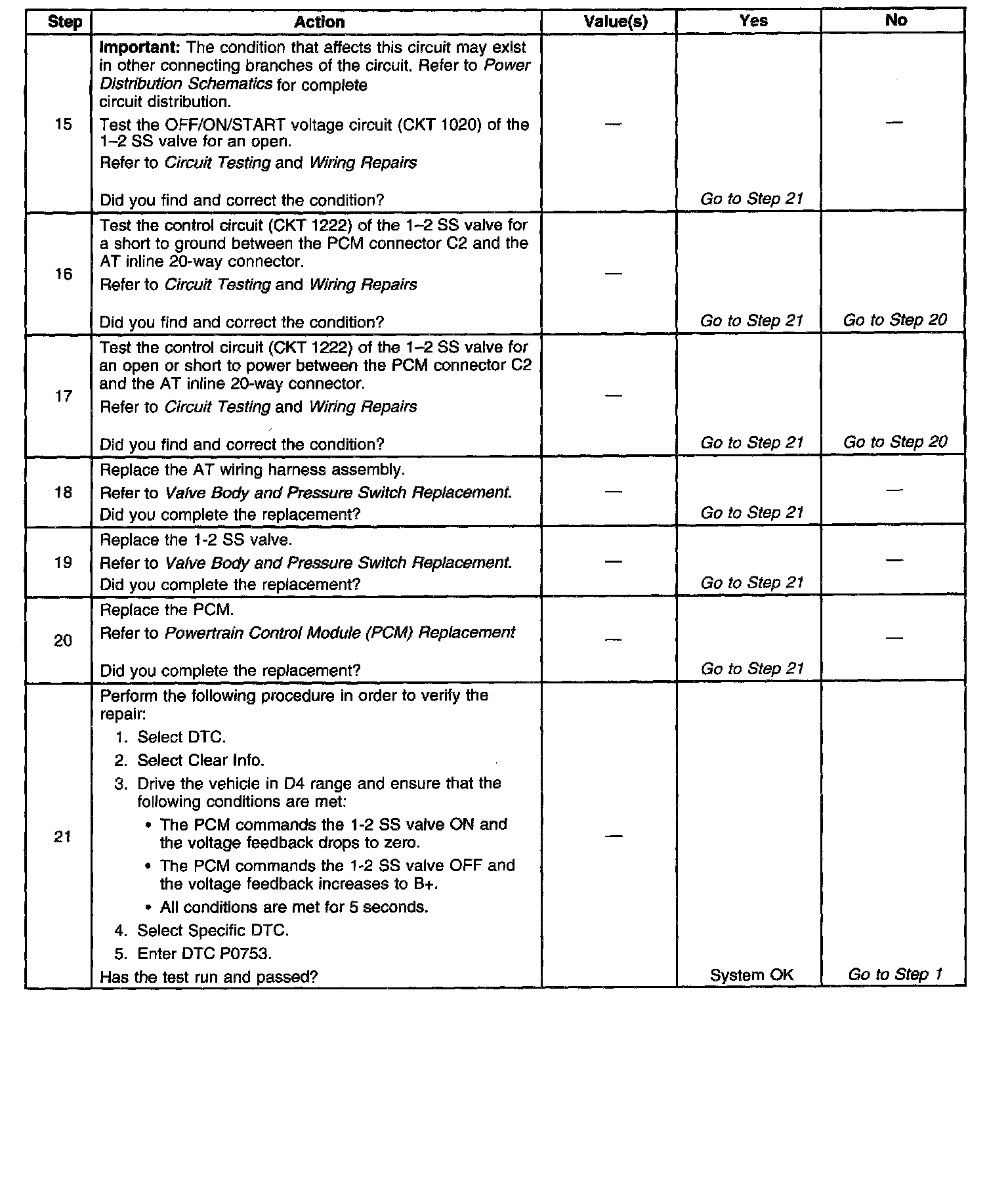 When the PCM detects a continuous open, short to ground or short to power in the 1-2 SS valve circuit, then DTC P0753 sets. DTC P0753 is a type B DTC.