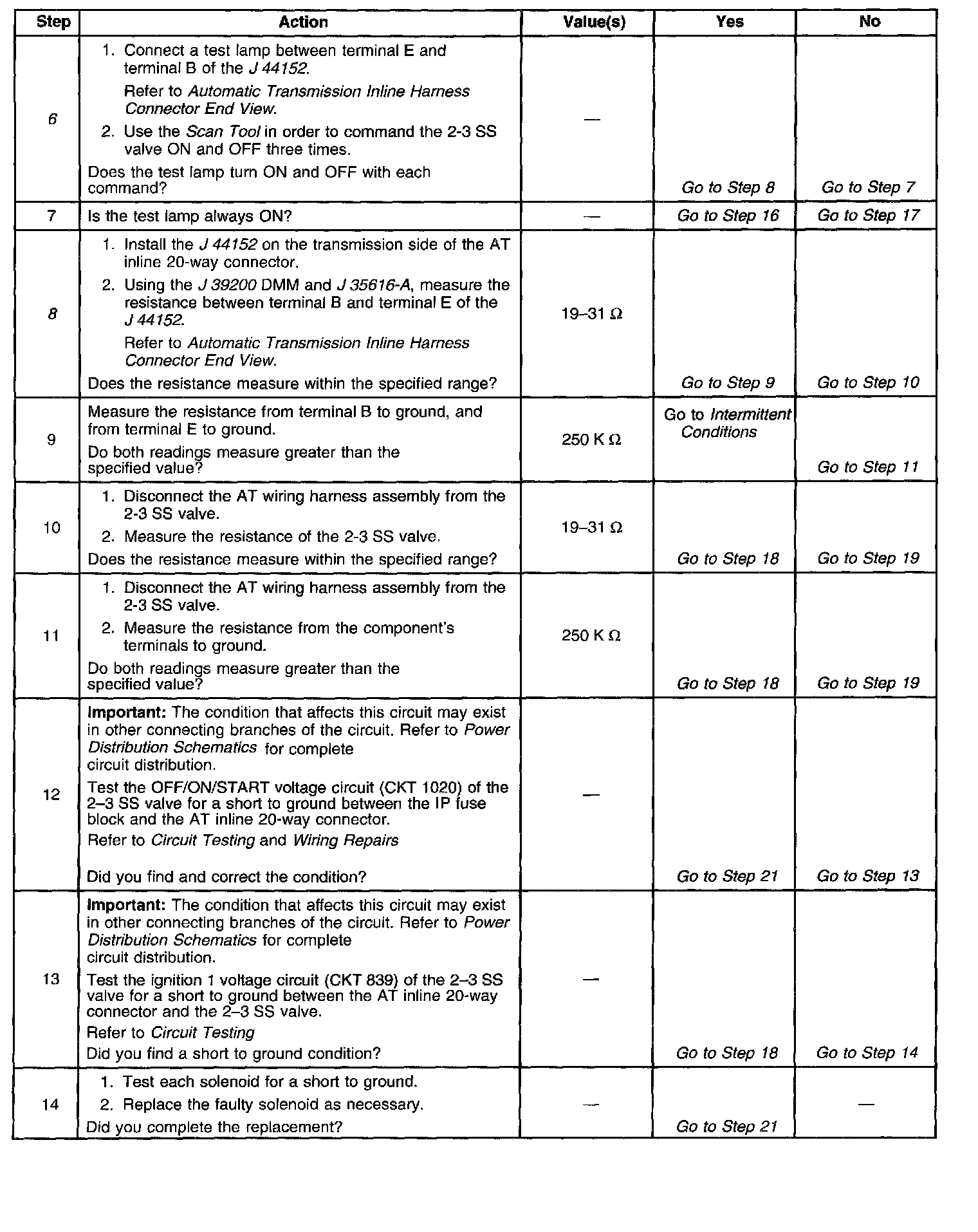 8. This step measures the resistance of the AT wiring harness assembly and the 2-3 SS valve.
