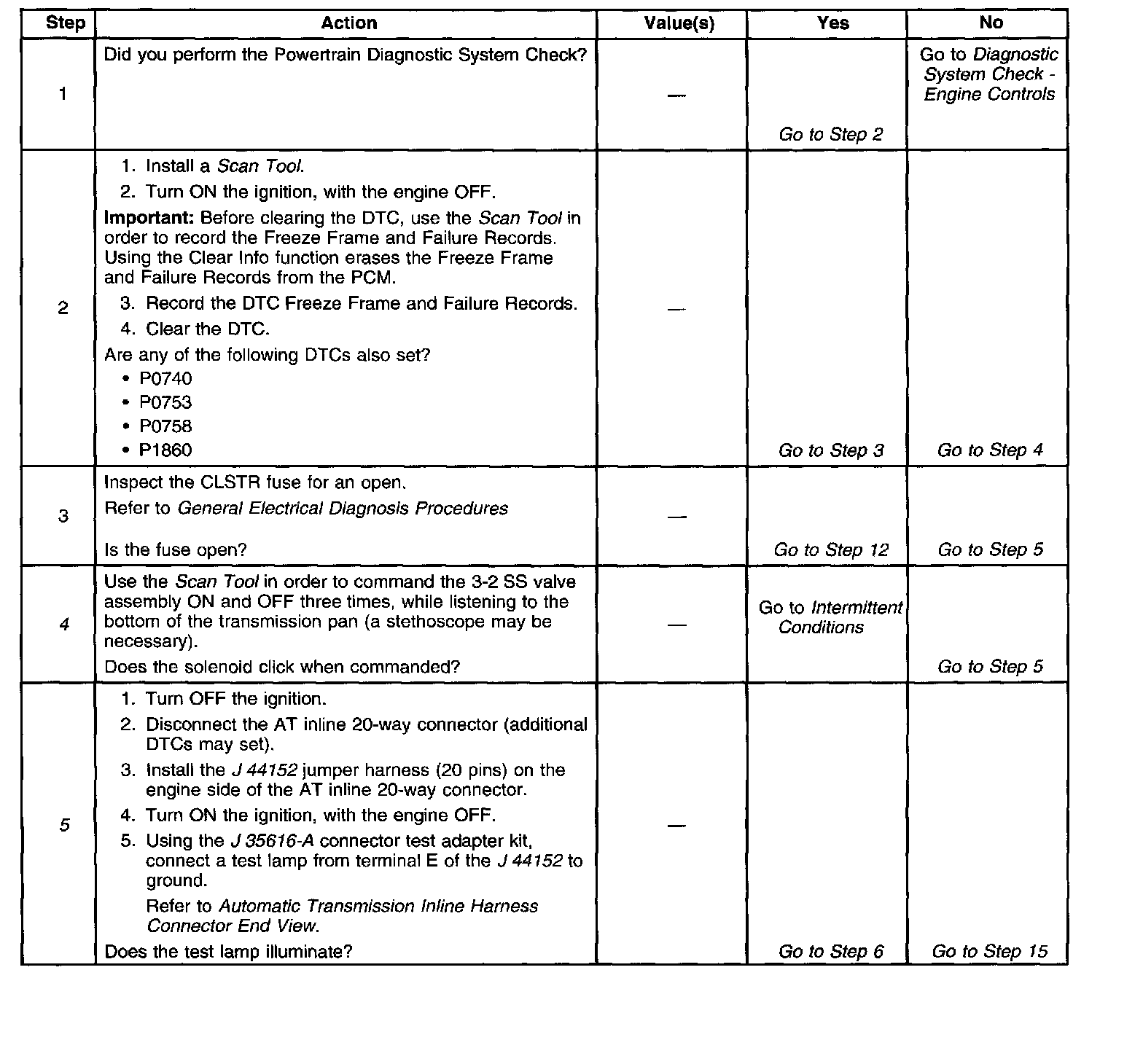 5. This step tests for power to the 3-2 SS valve assembly.