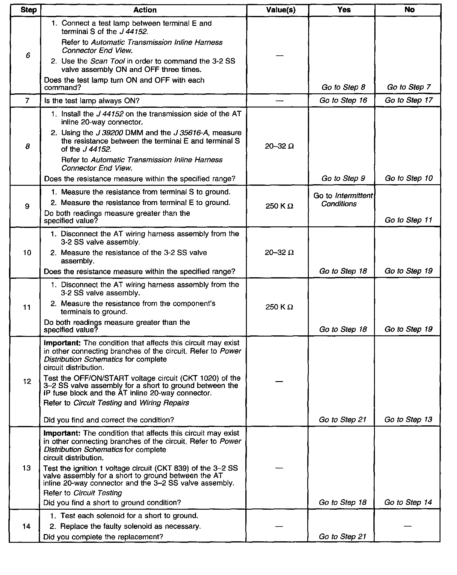 8. This step measures the resistance of the automatic transmission (AT) wiring harness assembly and the 3-2 SS valve assembly.