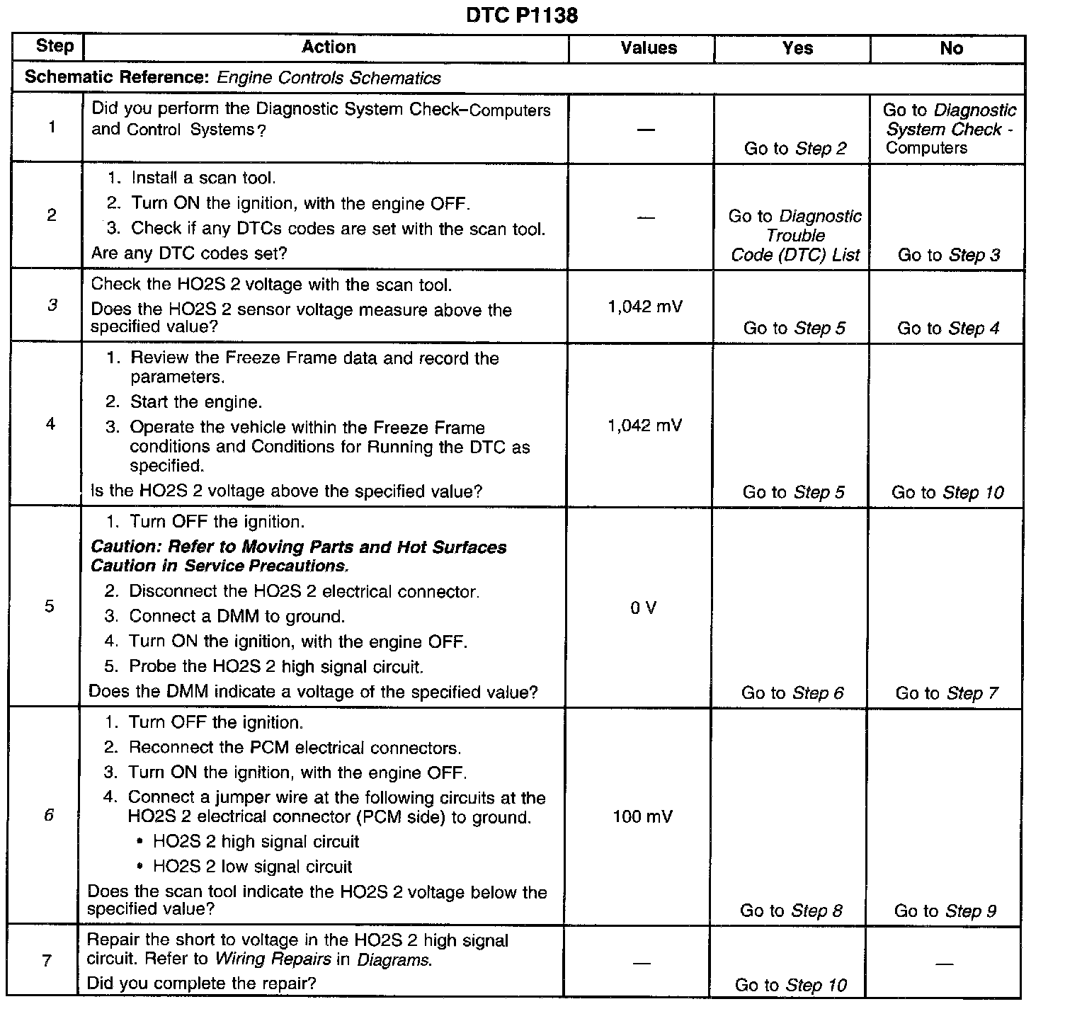 6. Disconnecting the HO2S 2 and connecting a jumper wire between the HO2S 2 high signal circuit and the HO2S 2 low signal circuit to ground, should cause the scan tool to display HO2S 2 voltage below 100 mV. If the signal voltage is still high, the this indicates that the PCM is malfunctioning.