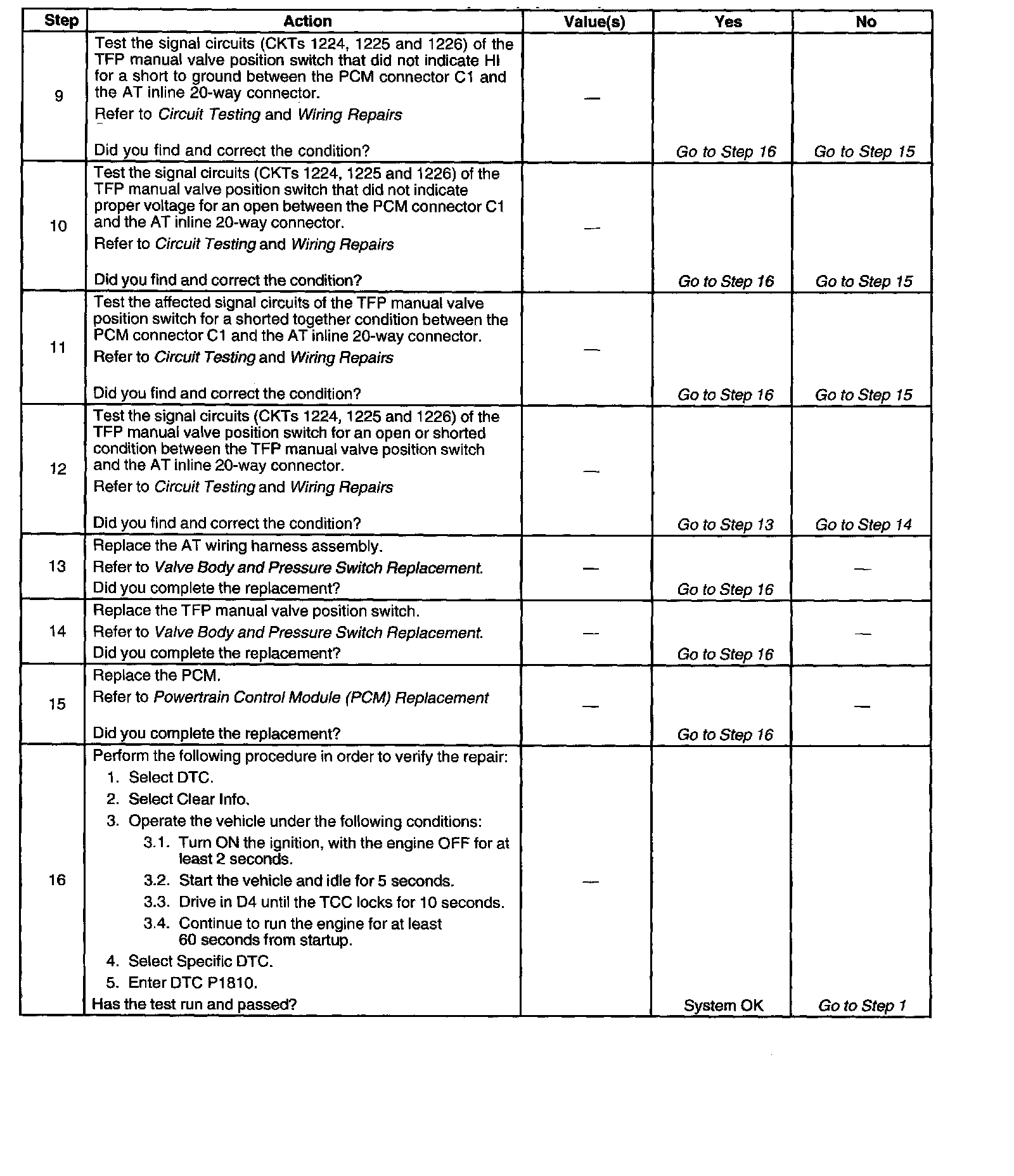 When the PCM detects an invalid state of the TFP manual valve position switch circuit by deciphering the TFP manual valve position switch inputs, then DTC P1810 sets. DTC P1810 is a type B DTC.