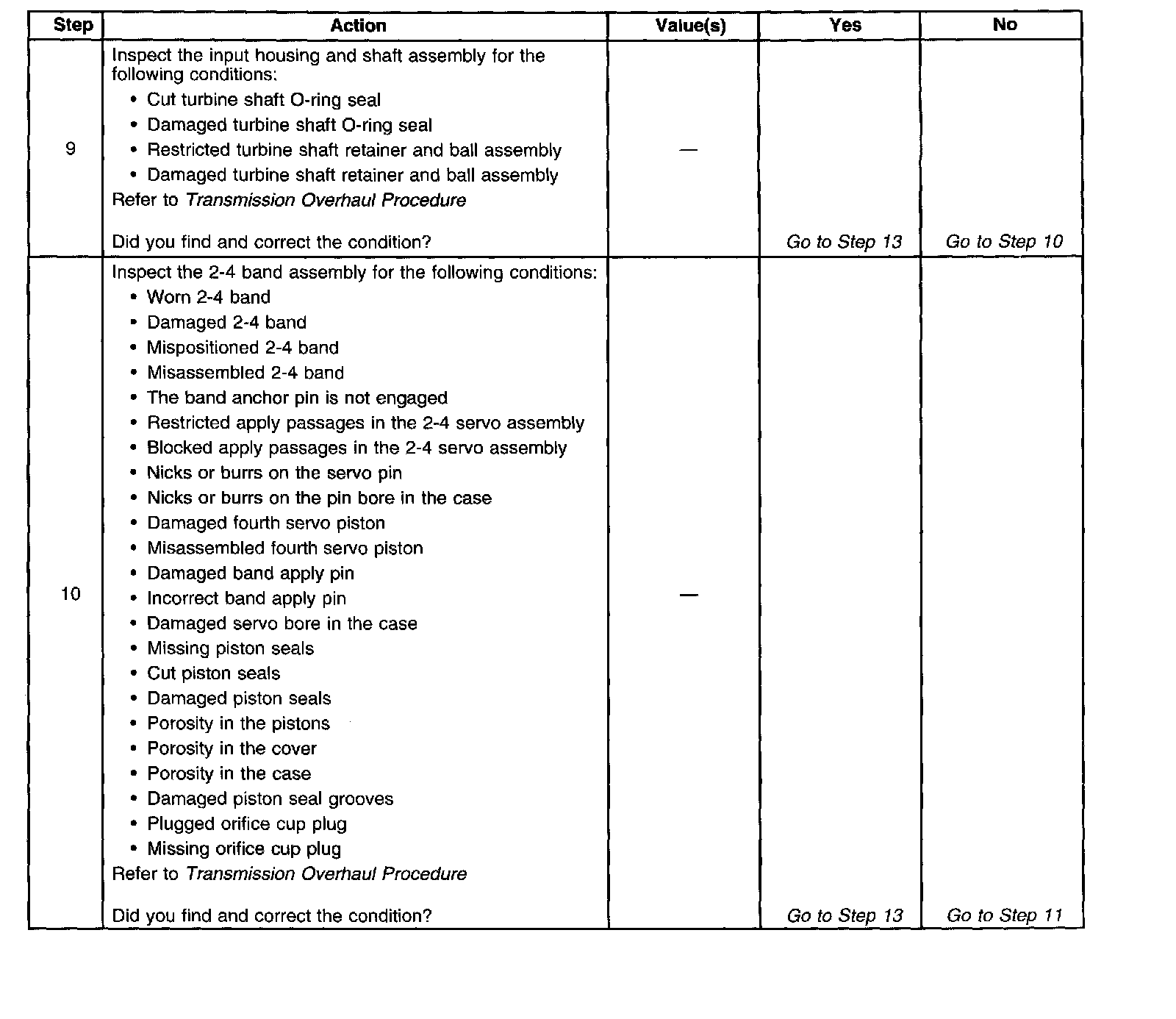 The numbers below refer to the step numbers on the diagnostic table.