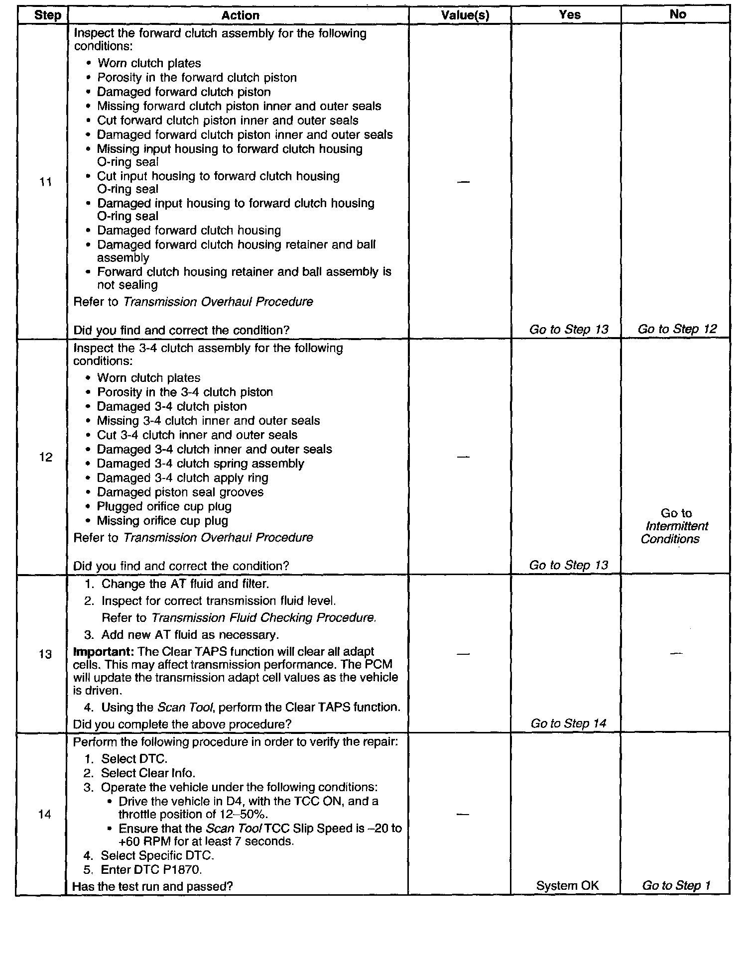^ Condition 1: If the TCC slip speed is 200-1000 RPM for 7 seconds, then the PCM commands maximum line pressure and freezes transmission adapt functions.
