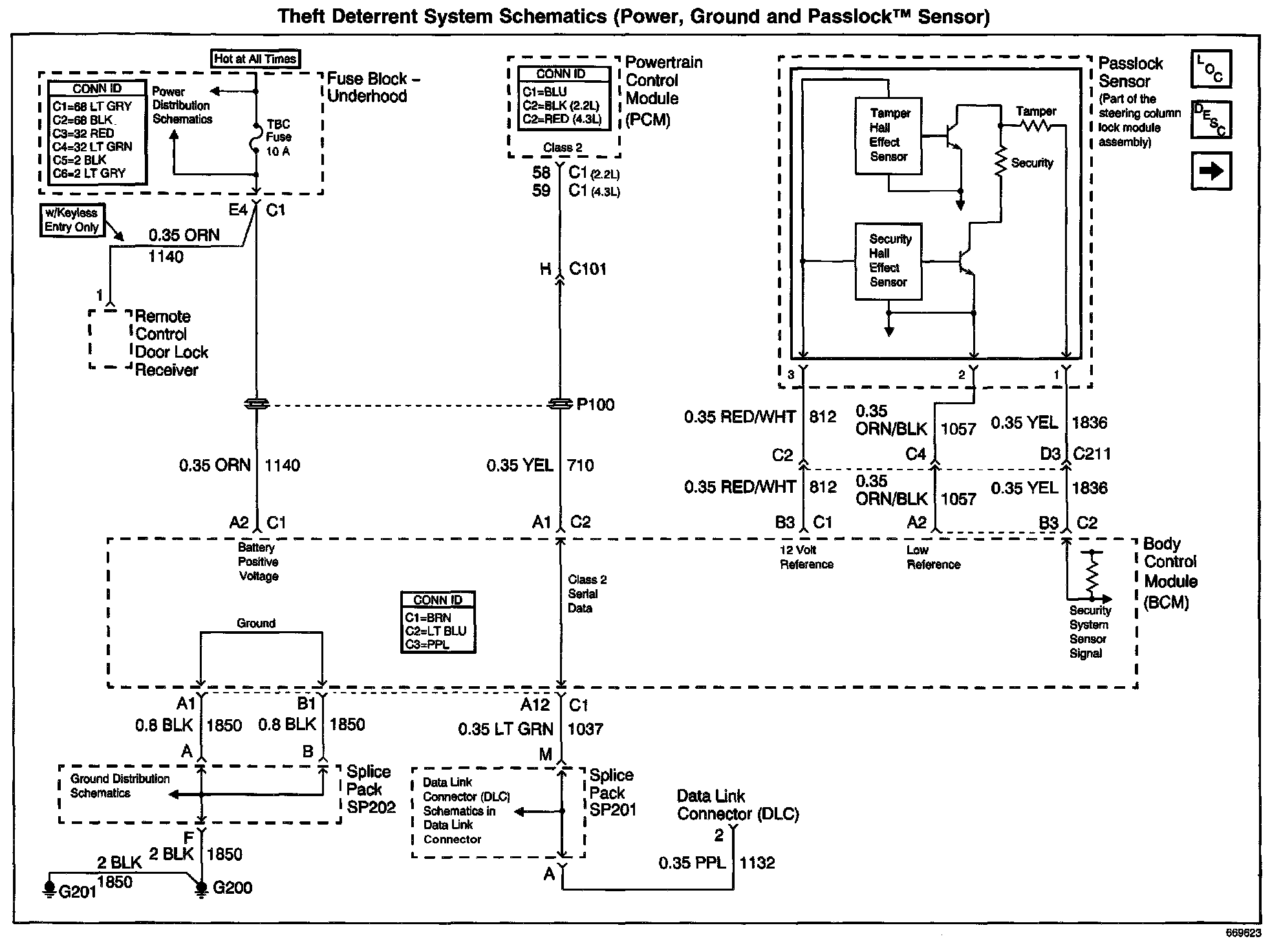 Theft Deterrent System Schematics: Power, Ground And Passlock(TM) Sensor: