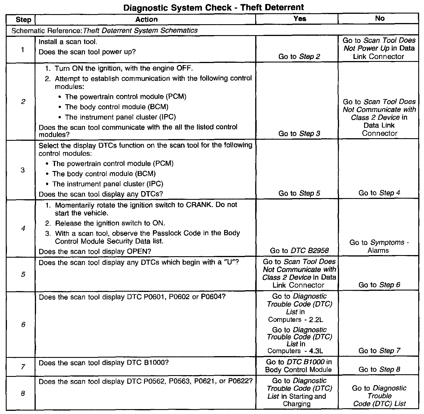 4. Tests for an open in the Passlock(TM) sensor signal circuit, which may not set a DTC (B2958) under certain conditions.