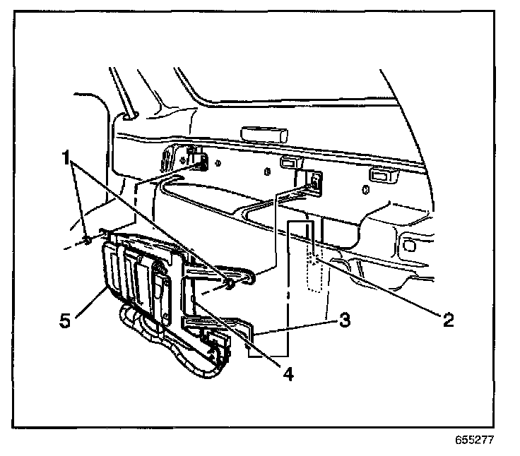 5. Install the VCU/VIU assembly to the vehicle ensuring the lower arm (3) of the mounting bracket is inserted in the slot (2) provided in the body sheet metal.