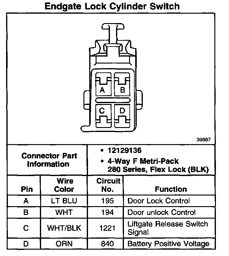 Endgate Lock Cylinder Switch: