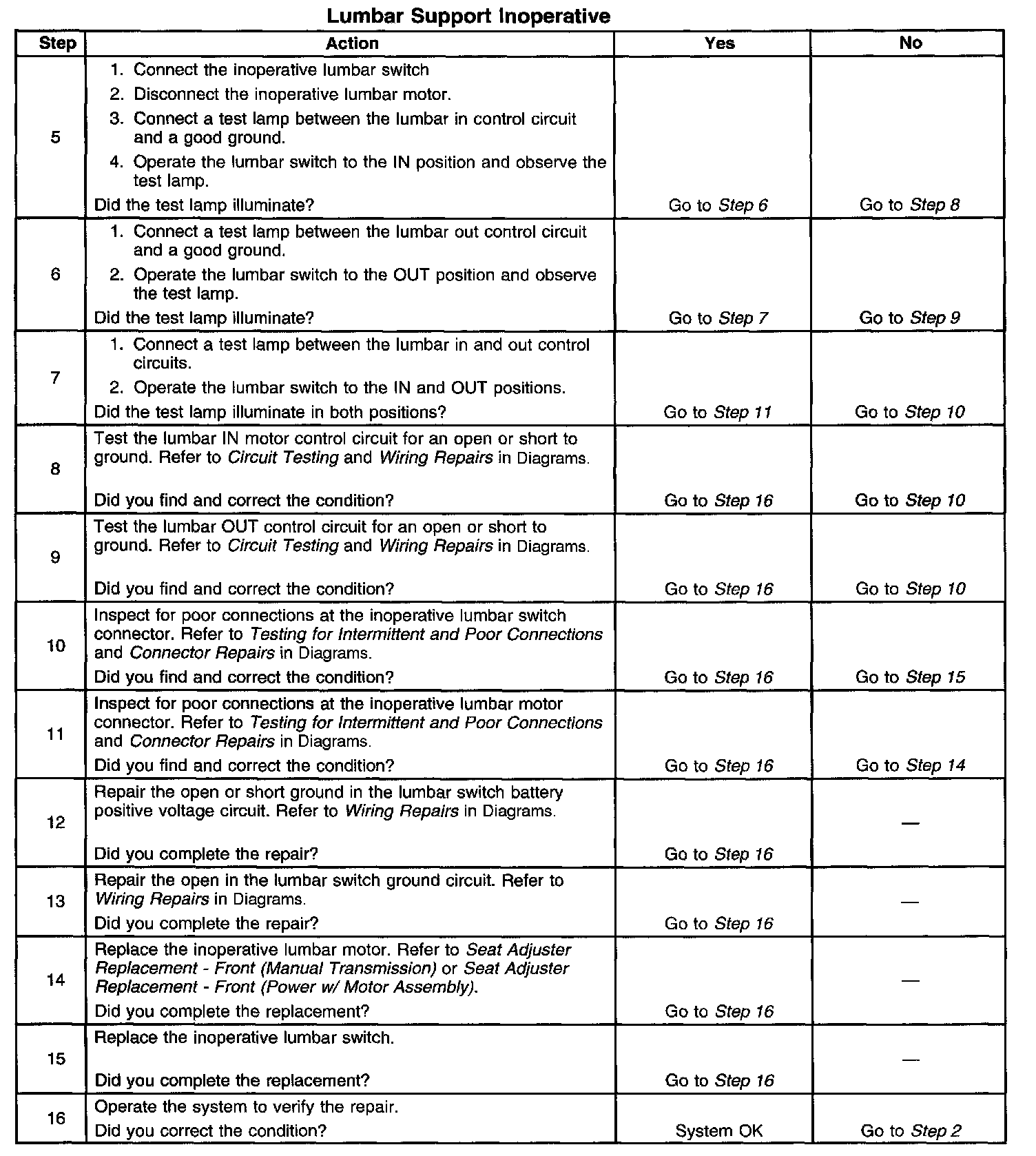 Lumbar Support Inoperative