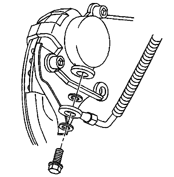 7. Remove the hose front flex brake hose bolt and gaskets from the caliper.