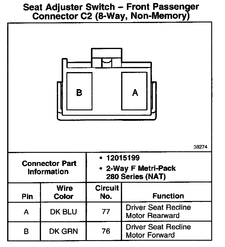 Seat Adjuster Switch - Front Passenger Connector C2 (8-Way, Non-Memory):