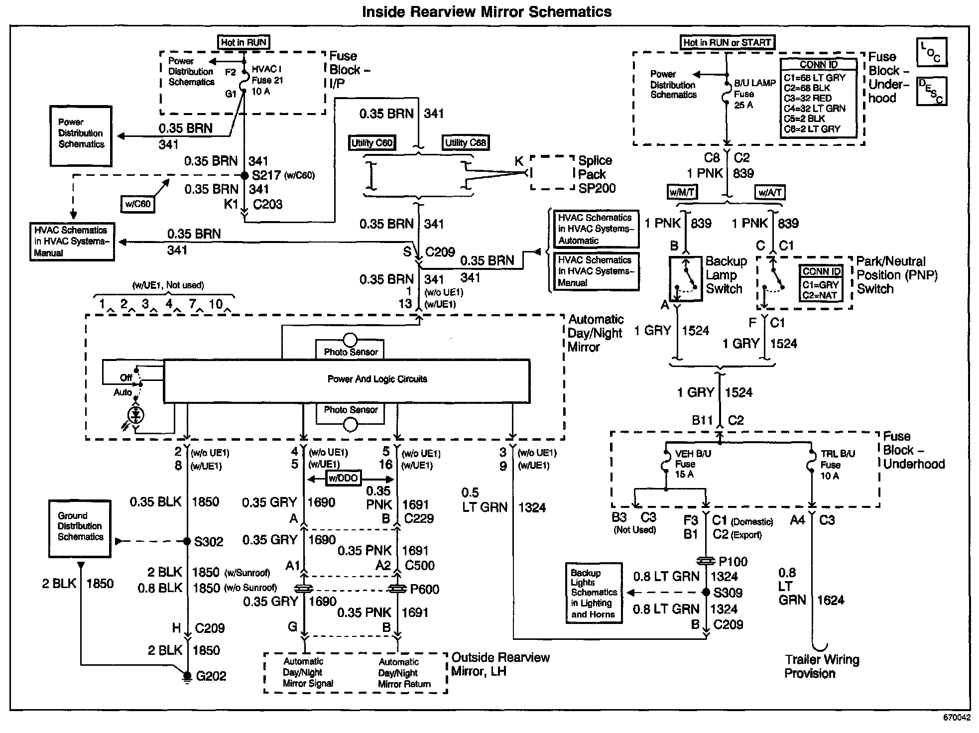 Inside Rearview Mirror Schematics: