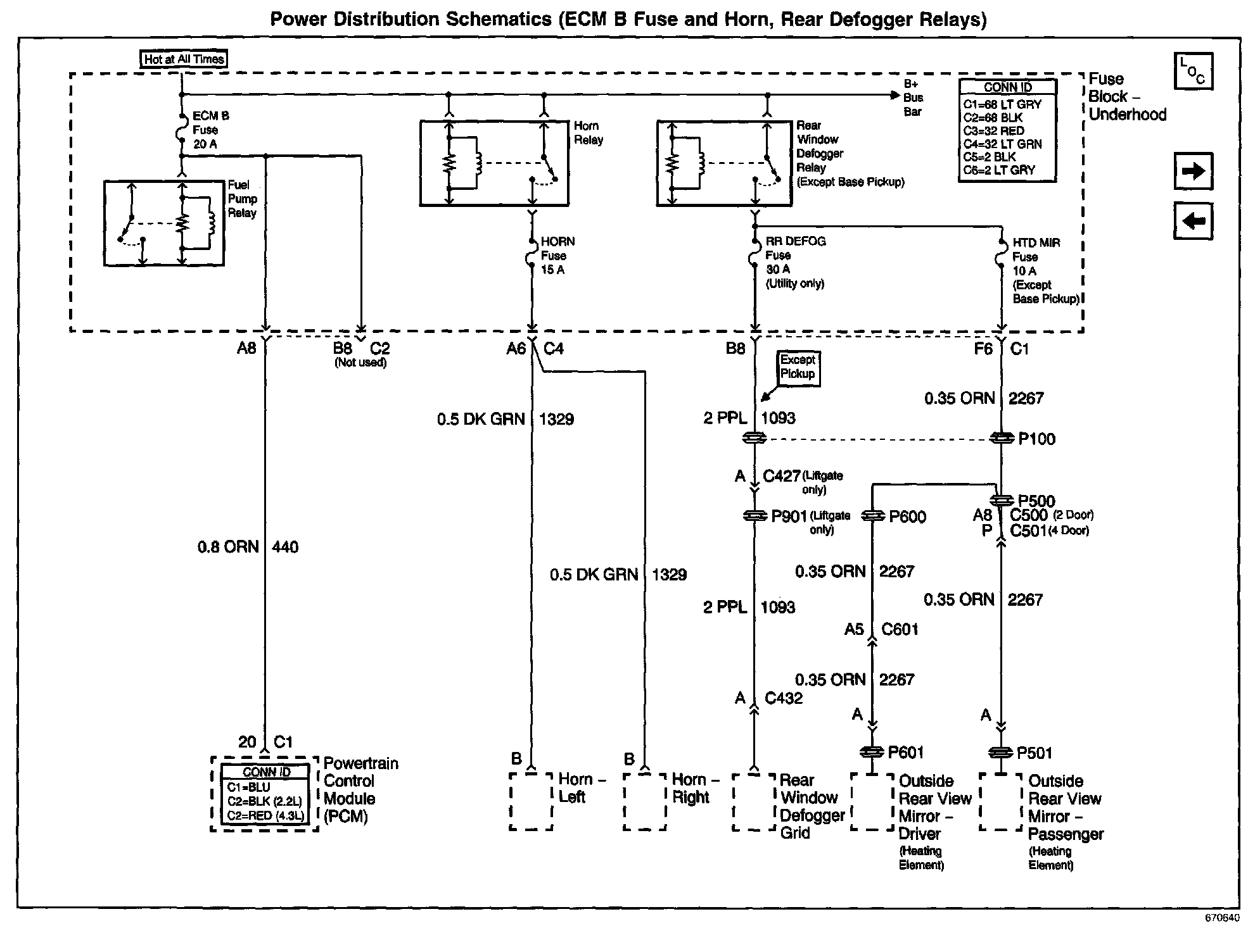 Power Distribution Schematics: ECM B Fuse And Horn, Rear Defogger Relays: