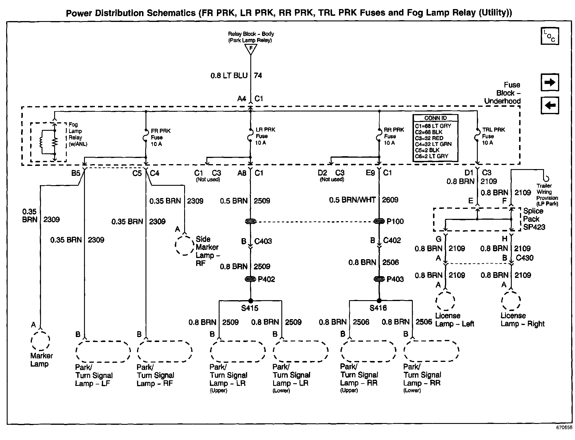 Power Distribution Schematics: FR PRK, LR PRK, RR PRK, TRL PRK Fuses And Fog Lamp Relay (Utility):