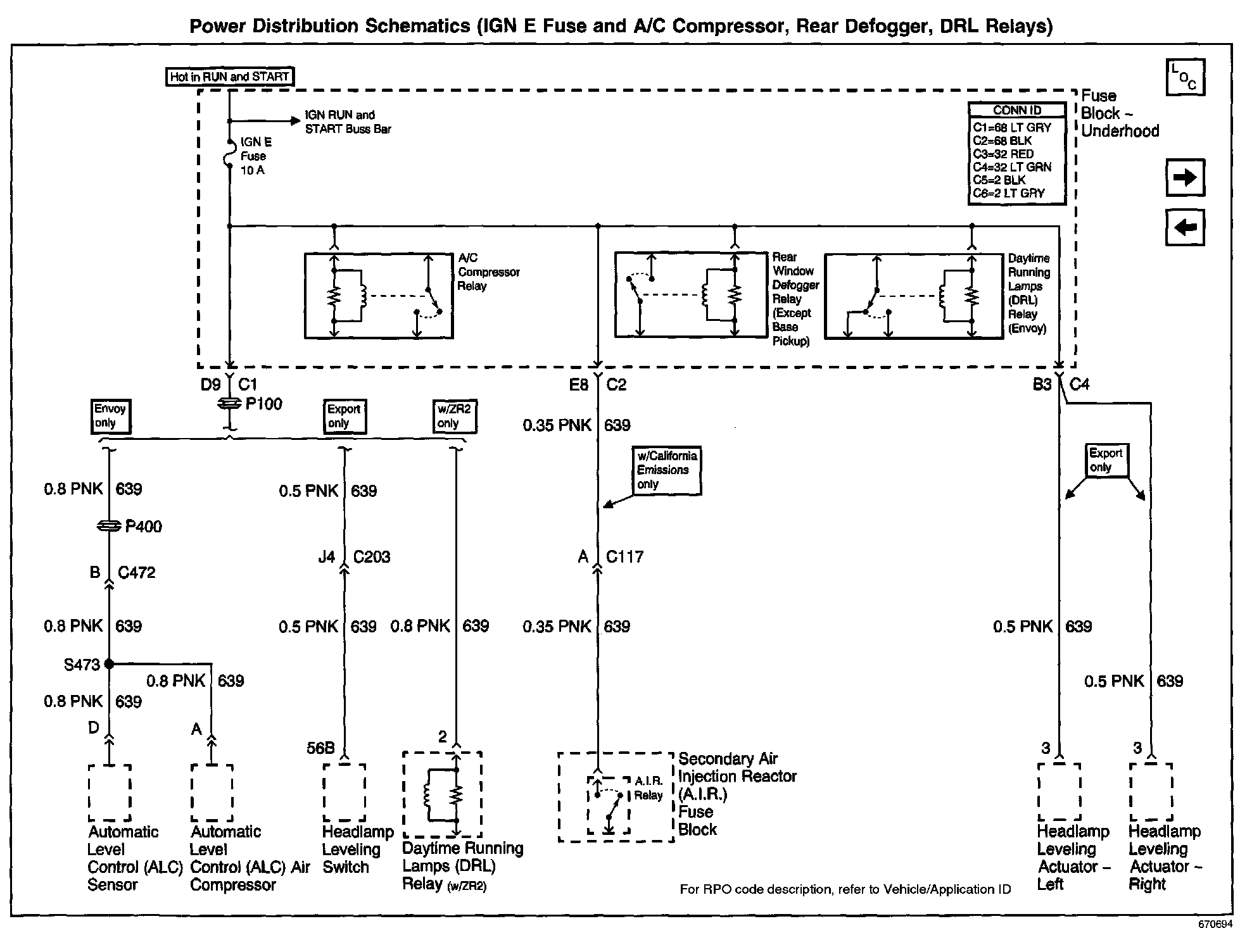 Power Distribution Schematics: HI BEAM, LD LEV, DRL Fuses And Low Beam Relay (Envoy Only):