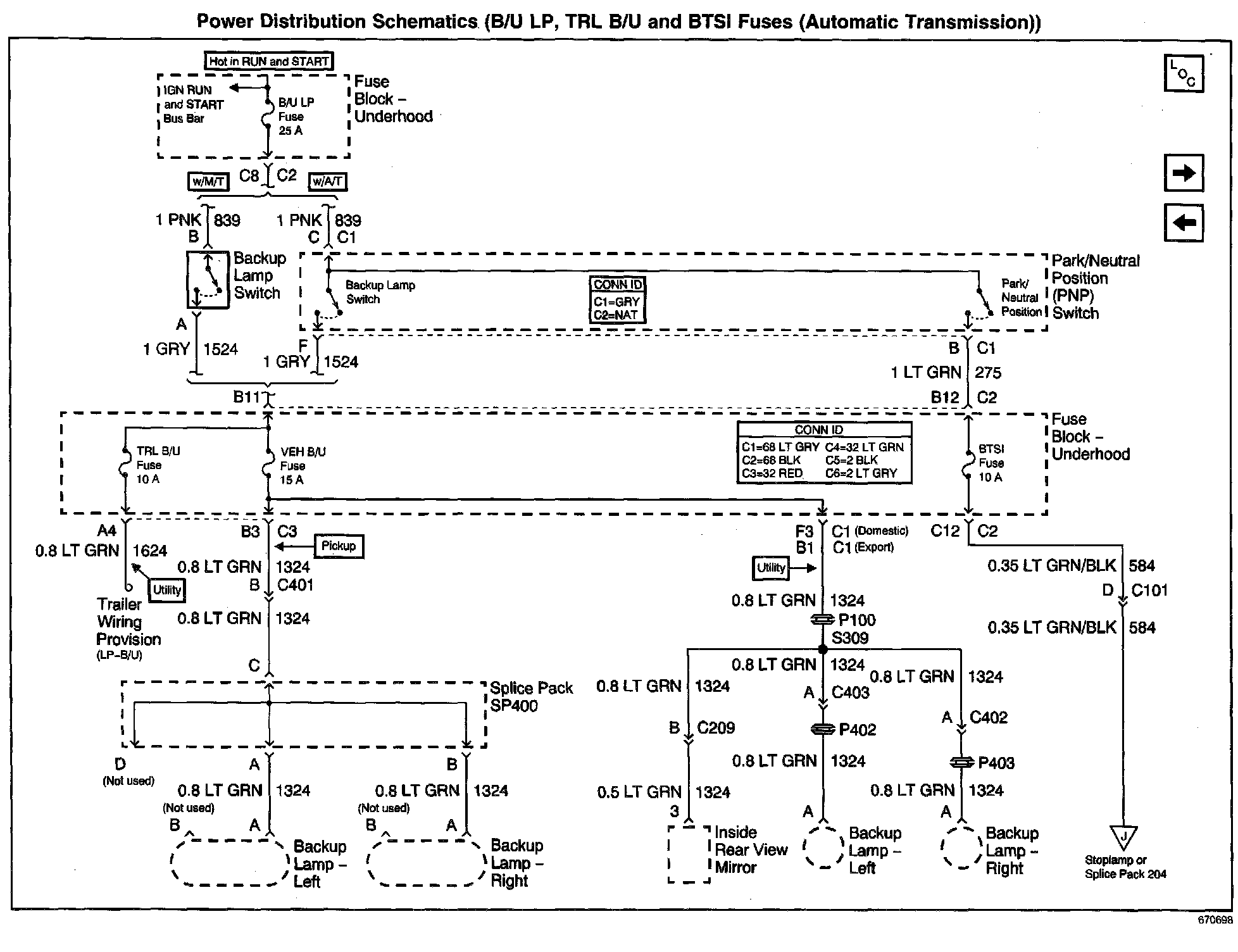 Power Distribution Schematics: B/U LP, TRL B/U And BTSI Fuses (Automatic Transmission):