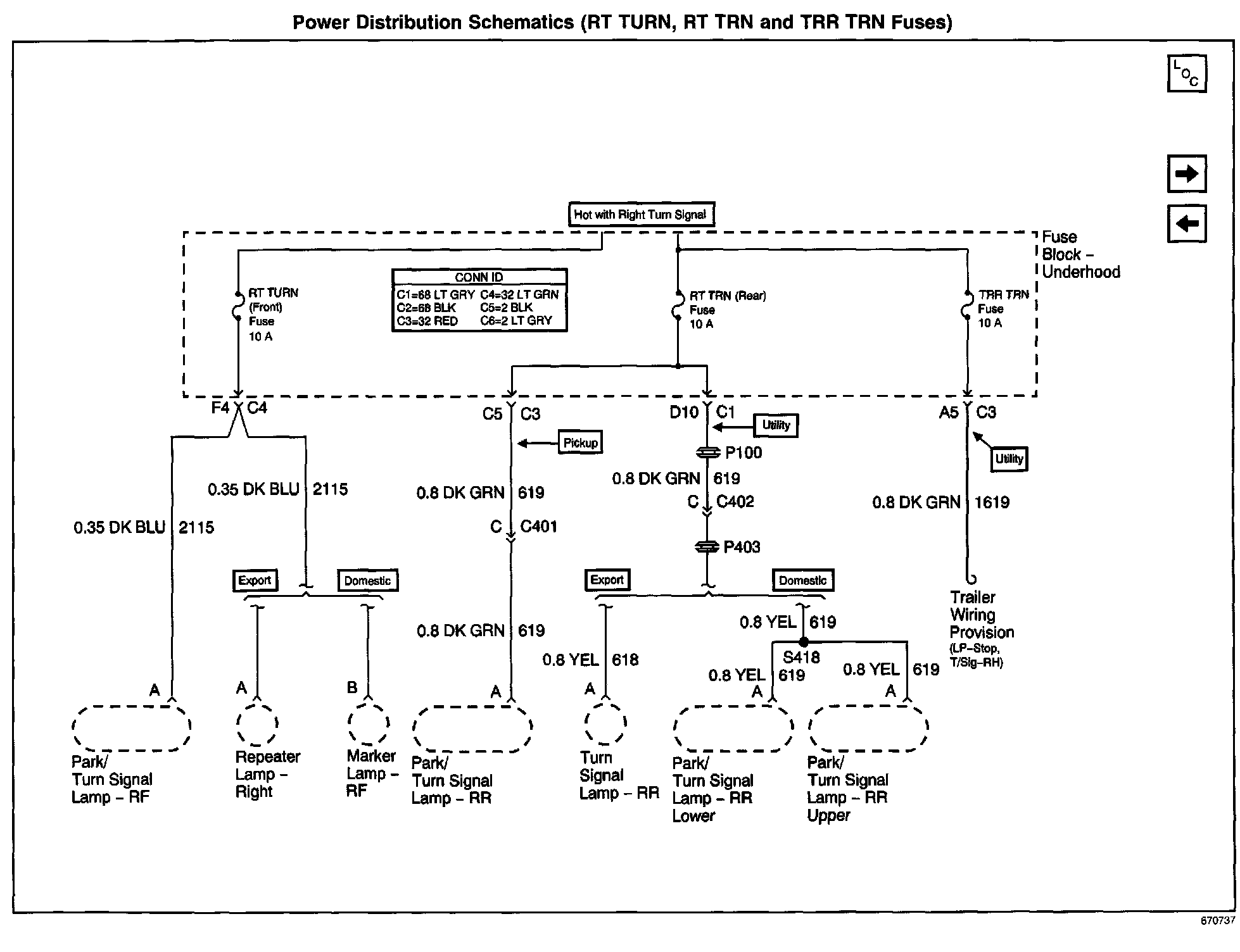 Power Distribution Schematics: RT TURN, RT TRN And TRR TRN Fuses: