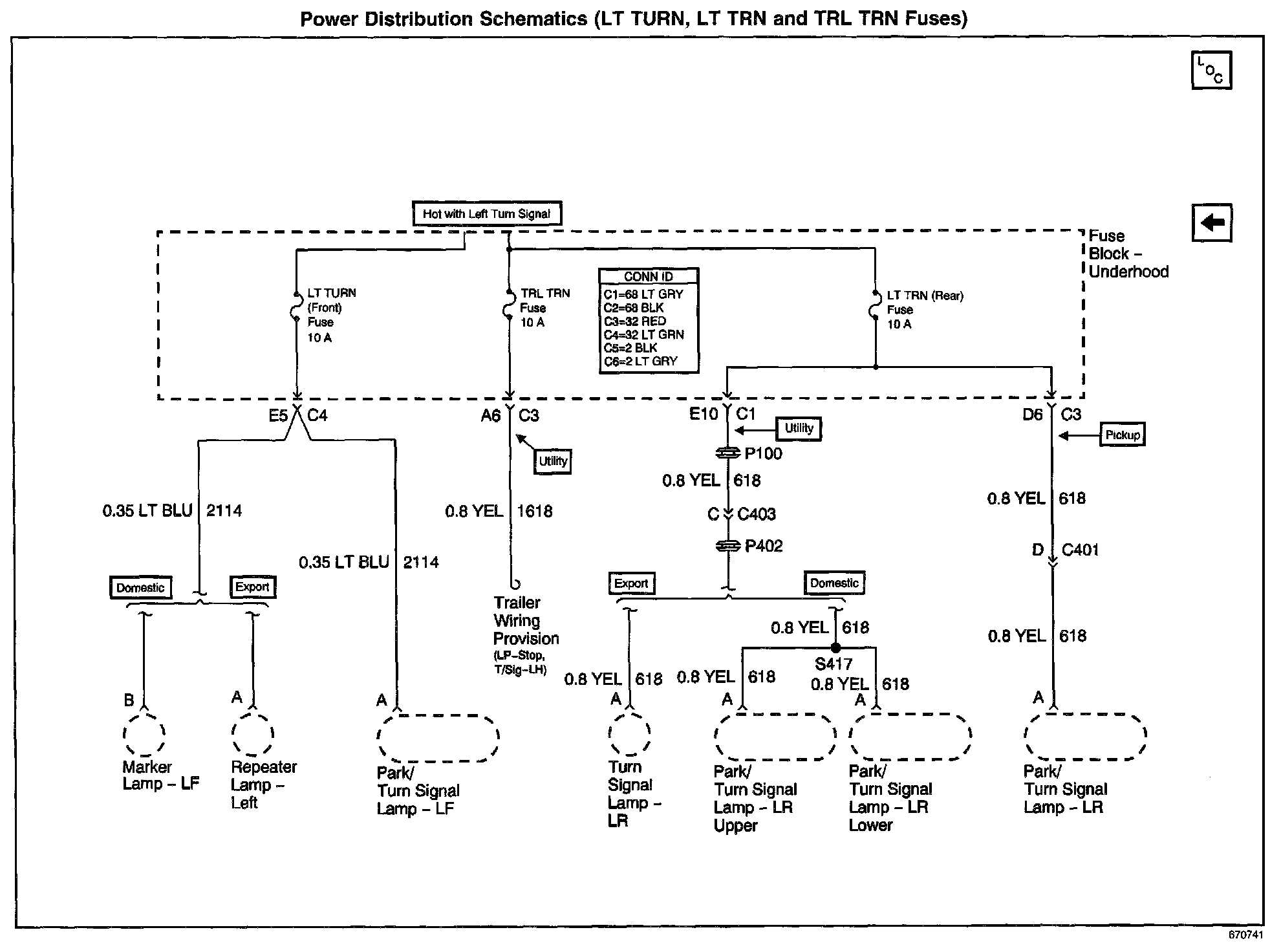 Power Distribution Schematics: LT TURN, LT TRN And TRL TRN Fuses: