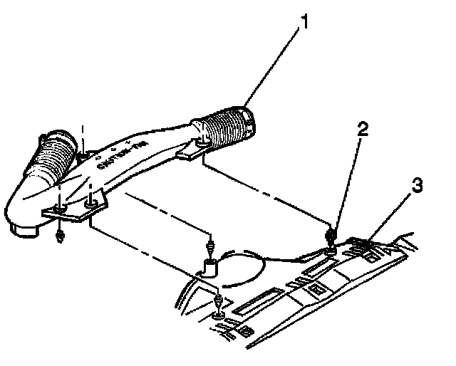 1.3. Remove the intake duct assembly (1) from the fan shroud (3).