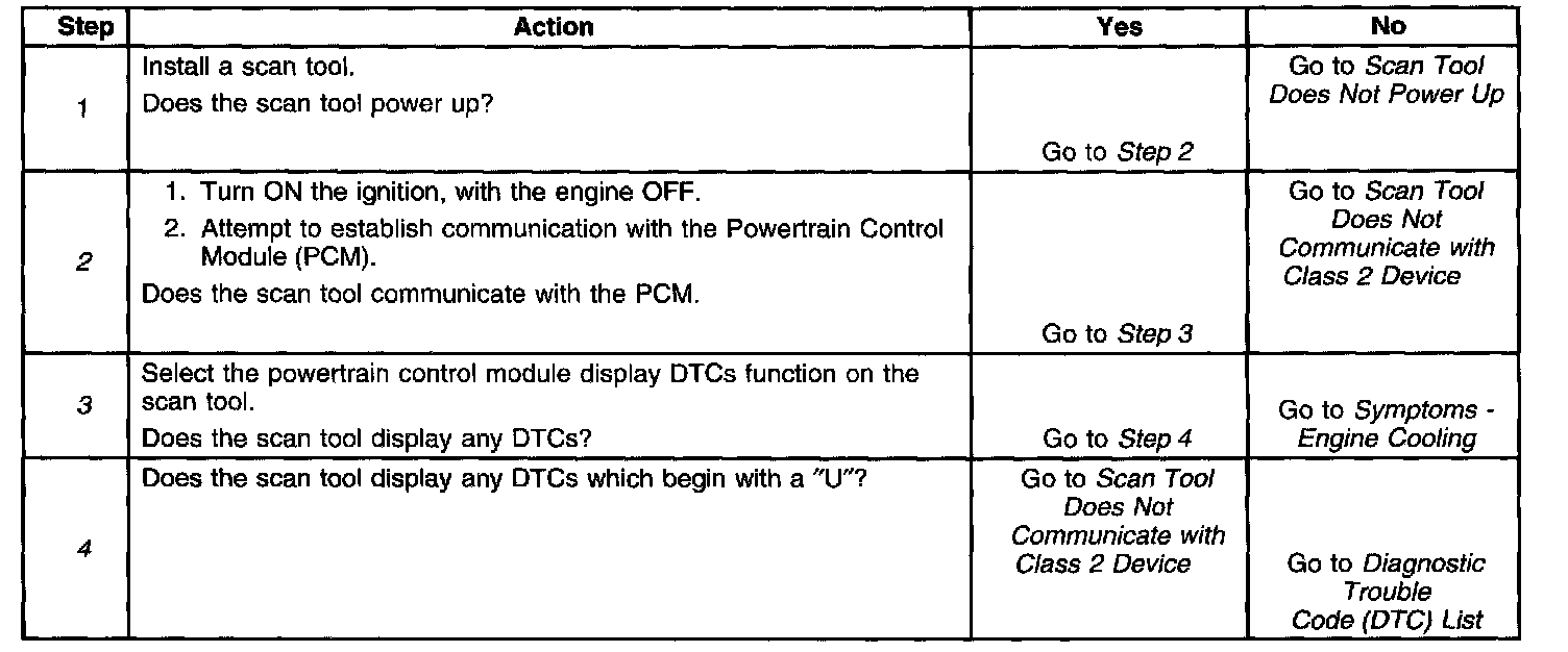 3. Determine if the Powertrain Control Module (PCM) has set DTCs which may affect Engine Cooling operation are present.