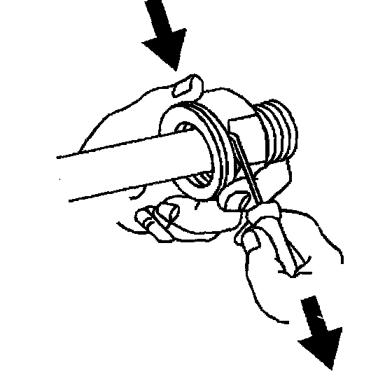 10. Rotate the retaining ring around the quick connector until the retaining ring is out of position and can be completely removed. Discard the retaining rings.