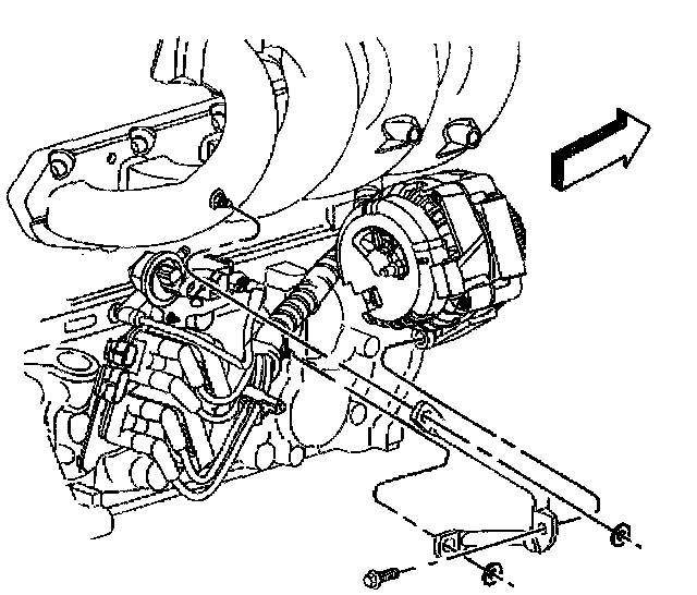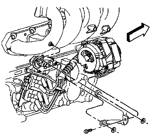 21. Working through the wheelhouse, remove the generator rear brace from the engine.